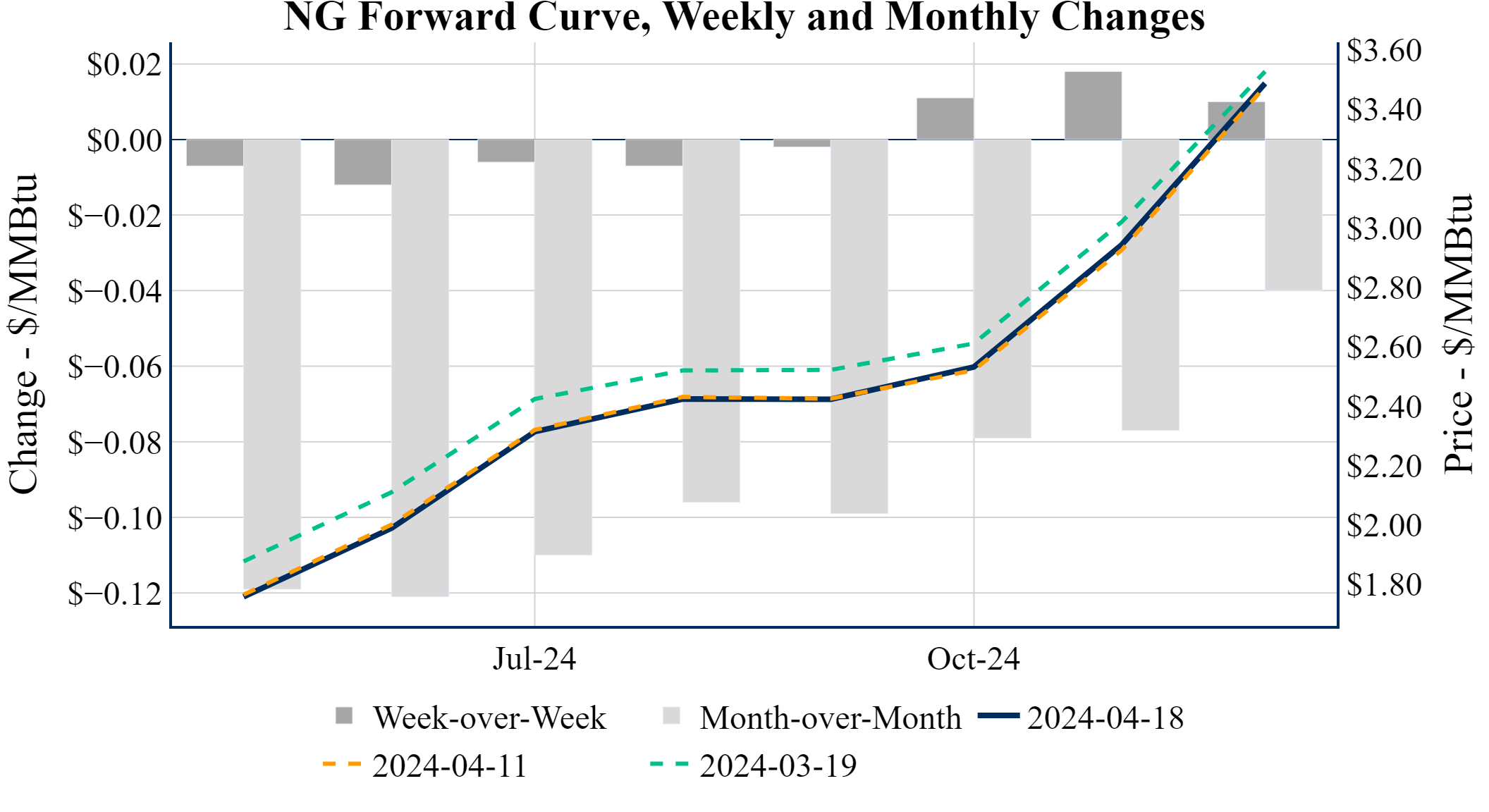 Prompt-Month Henry Hub (May 24) was up $0.045 on the day, to settle at $1.757