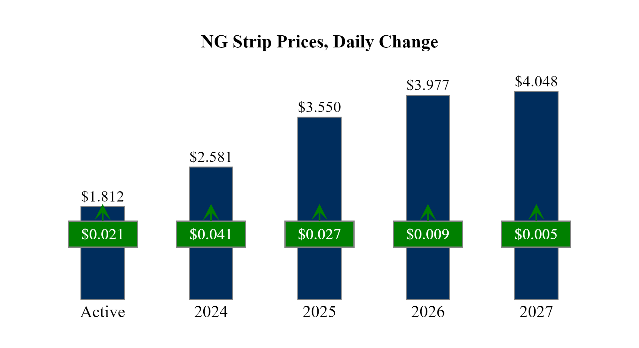 Prompt-Month Henry Hub (May 24) was up $0.021 on the day, to settle at $1.812Prompt-Month WTI (Jun 24) was up $1.46 on the day, to settle at $83.36