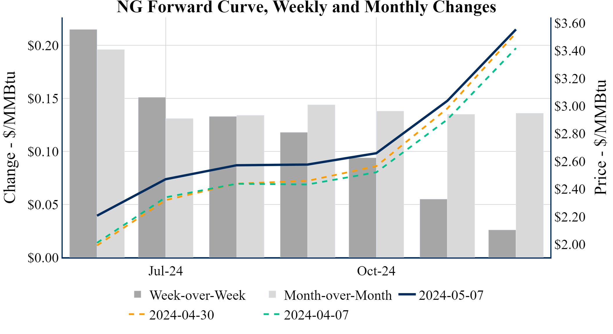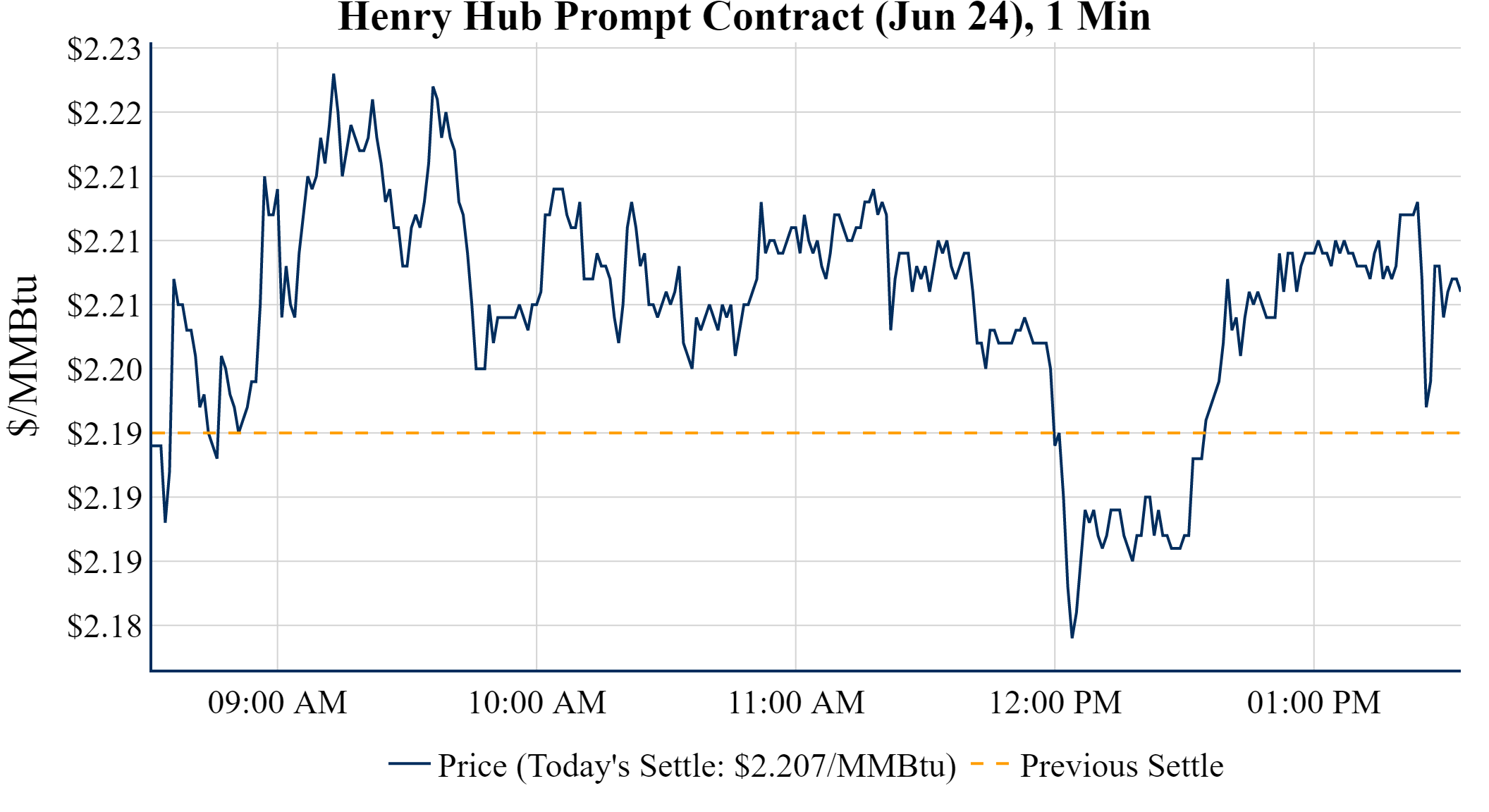 Prompt-Month Henry Hub (Jun 24) was up $0.012 on the day, to settle at $2.207