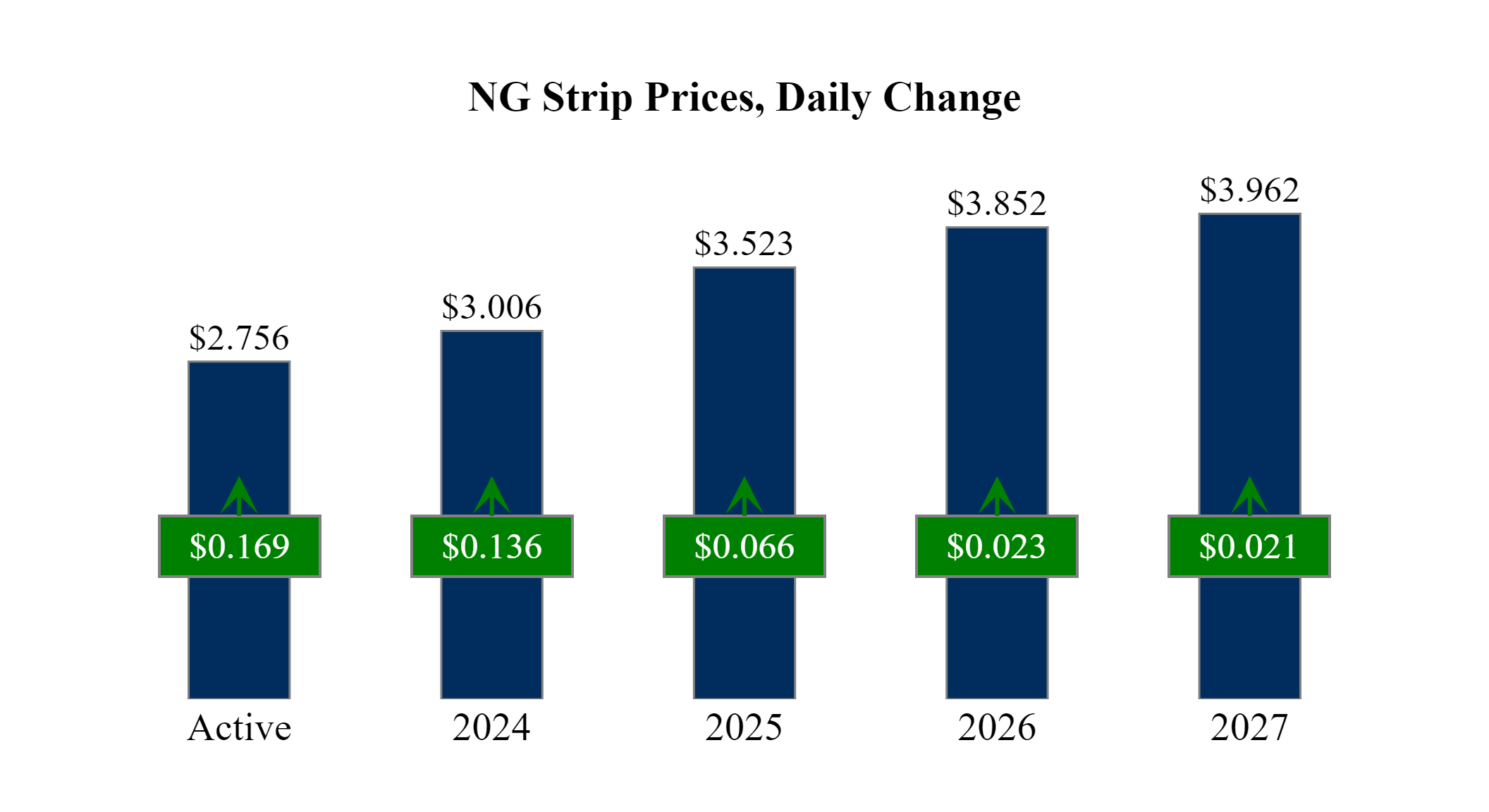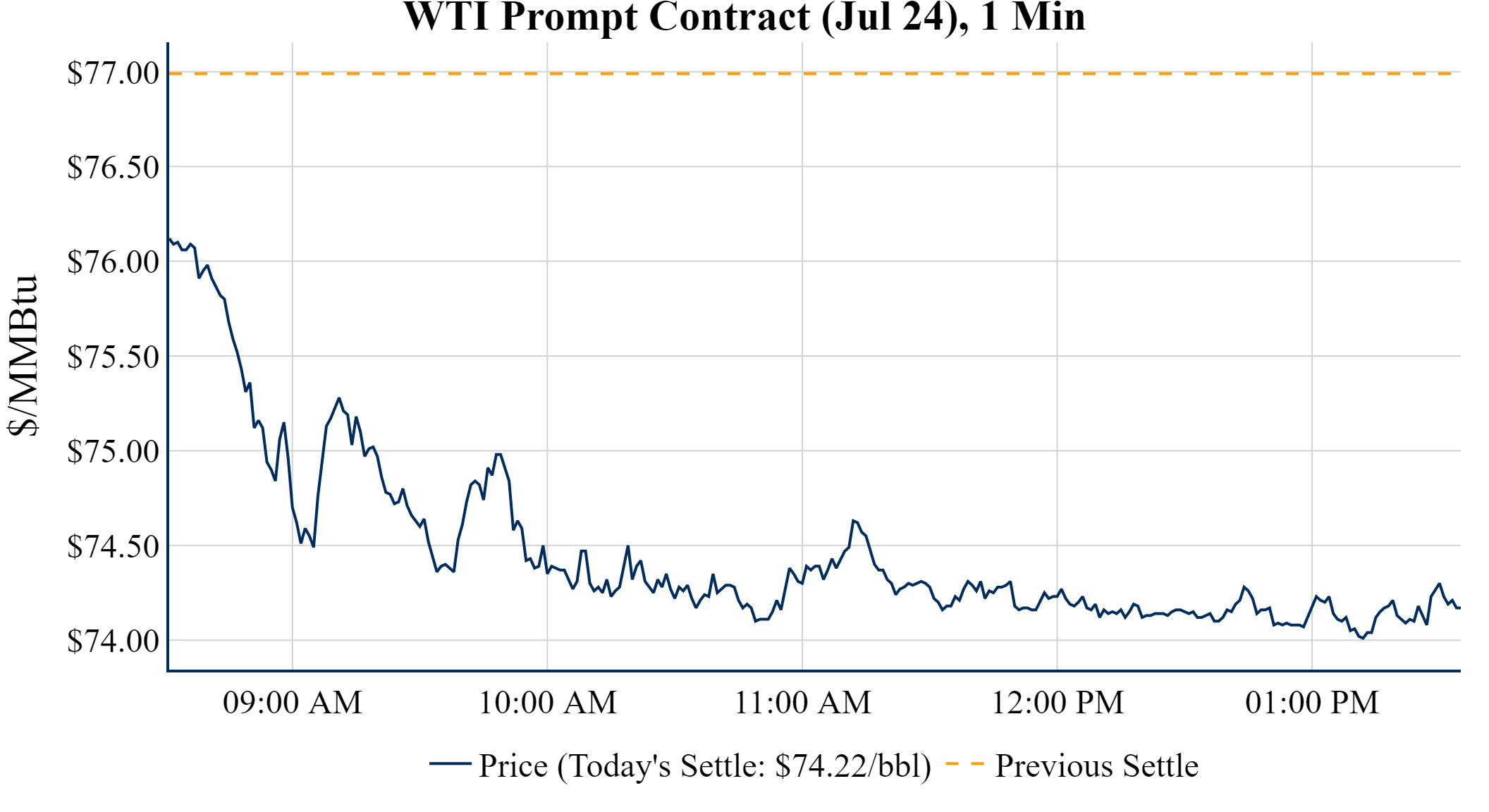 Prompt-Month Henry Hub (Jul 24) was up $0.169 on the day, to settle at $2.756 Prompt-Month WTI (Jul 24) was down $-2.77 on the day, to settle at $74.22