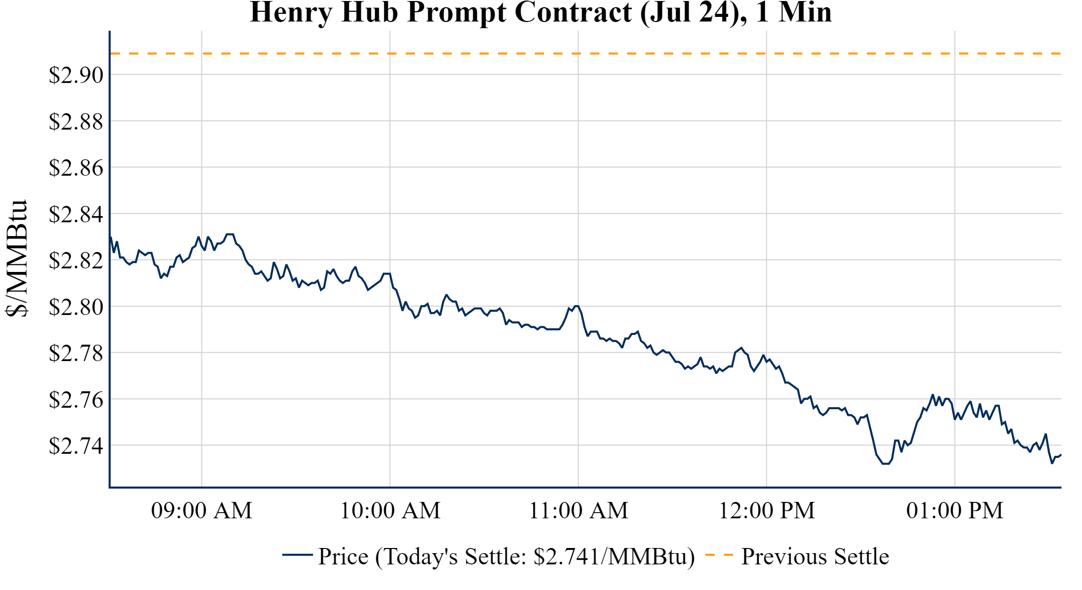 Prompt-Month Henry Hub (Jul 24) was down $-0.168 on the day, to settle at $2.741