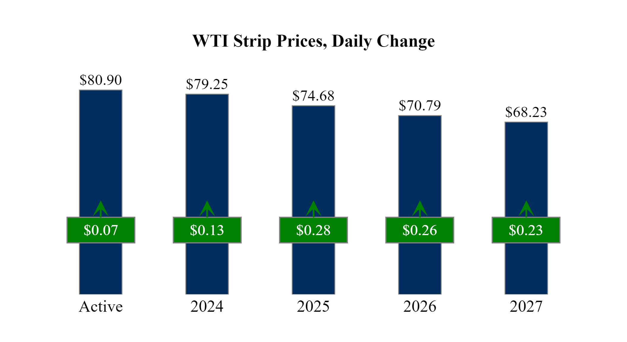 Prompt-Month Henry Hub (Jul 24) was down $-0.128 on the day, to settle at $2.628 Prompt-Month WTI (Aug 24) was up $0.07 on the day, to settle at $80.90