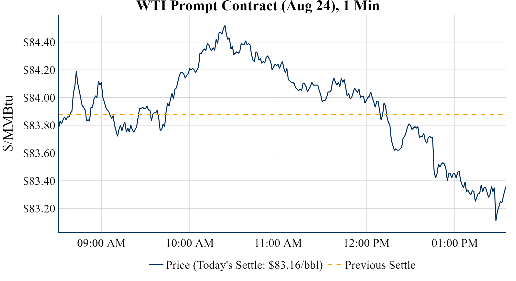 Prompt-Month WTI (Aug 24) was down $-0.72 on the day, to settle at $83.16