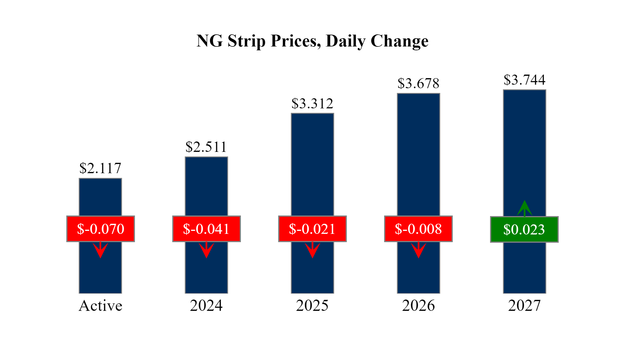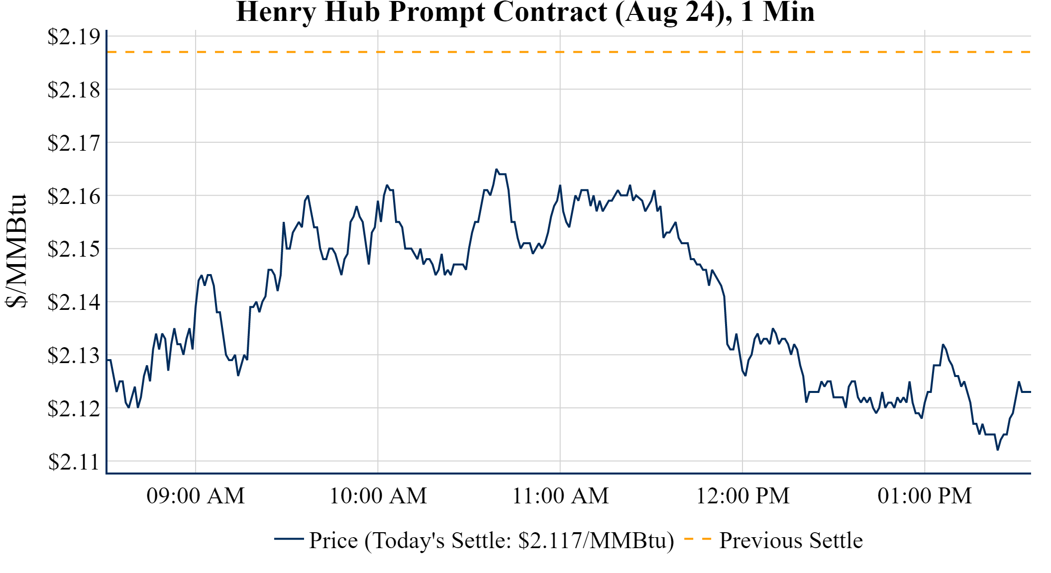 Prompt-Month Henry Hub (Aug 24) was down $-0.070 on the day, to settle at $2.117