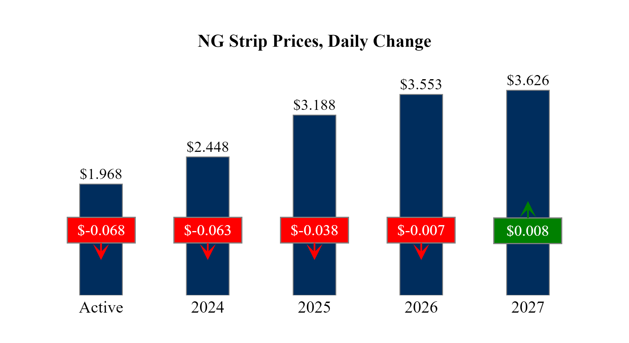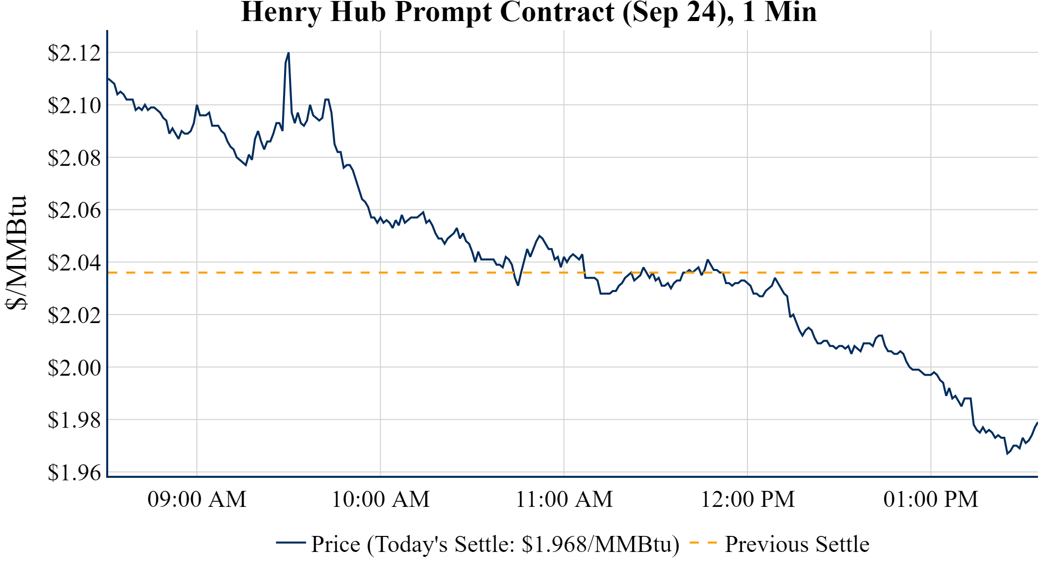 Prompt-Month Henry Hub (Sep 24) was down $-0.068 on the day, to settle at $1.968