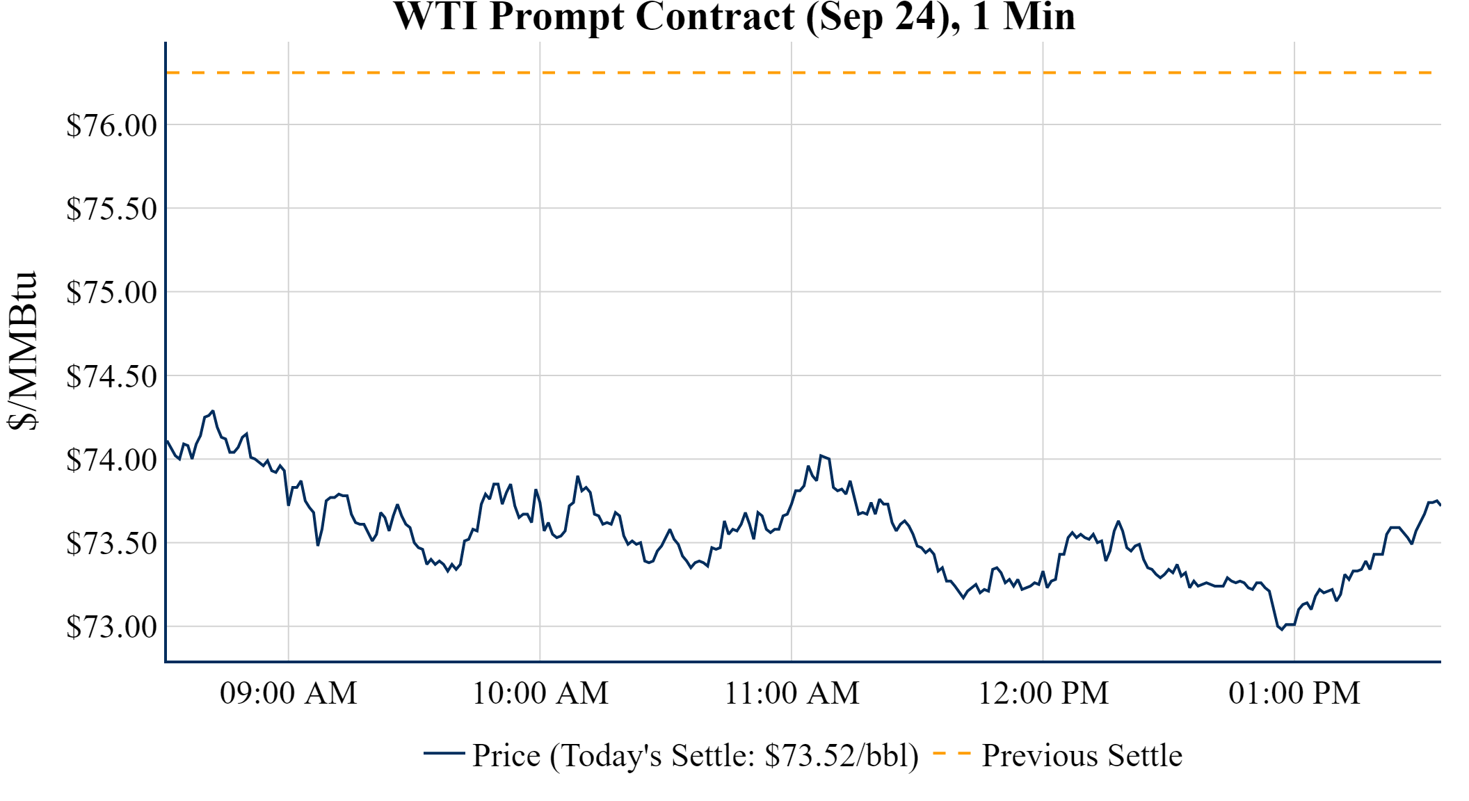 Prompt-Month WTI (Sep 24) was down $-0.58 on the day, to settle at $72.94