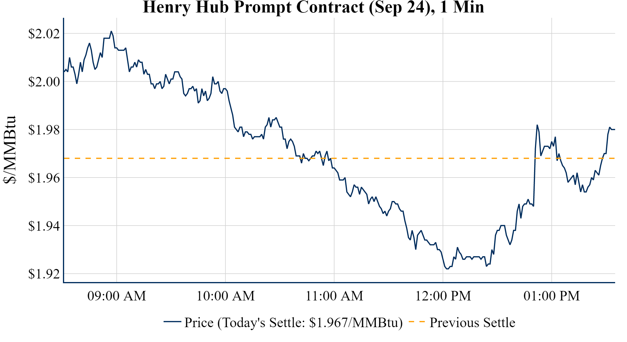 Prompt-Month Henry Hub (Sep 24) was down $-0.025 on the day, to settle at $1.942