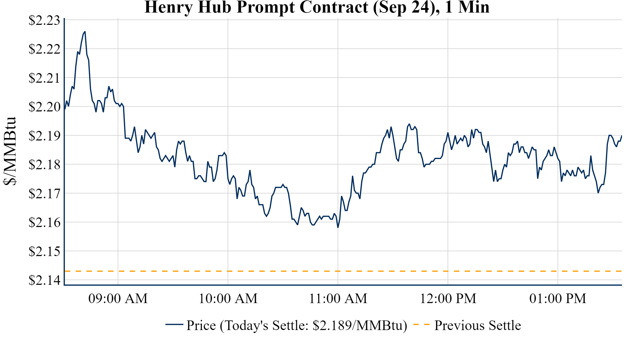 Prompt-Month Henry Hub (Sep 24) was up $0.046 on the day, to settle at $2.189