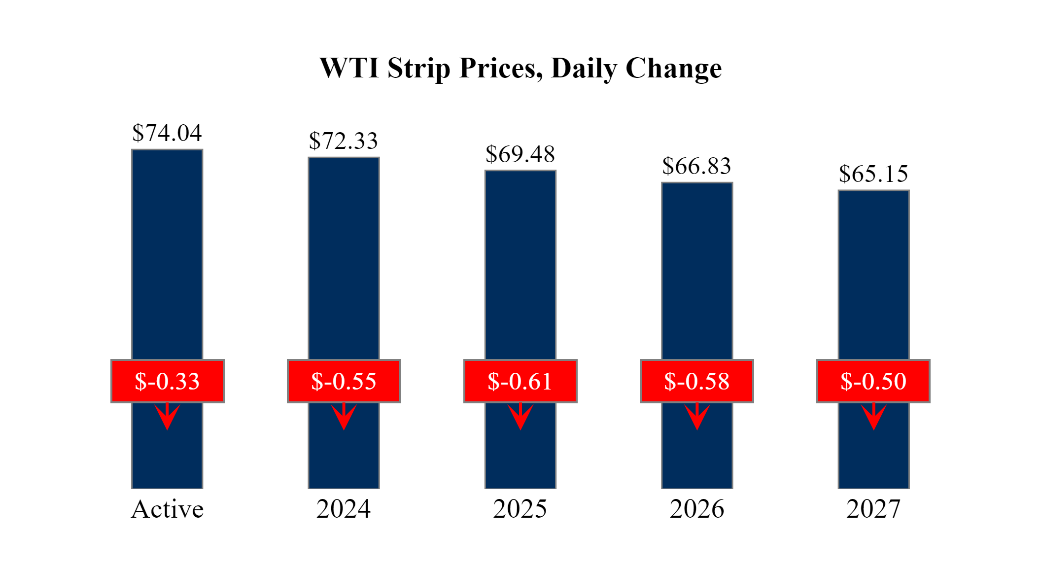 Prompt-Month WTI (Sep 24) was down $-0.33 on the day, to settle at $74.04