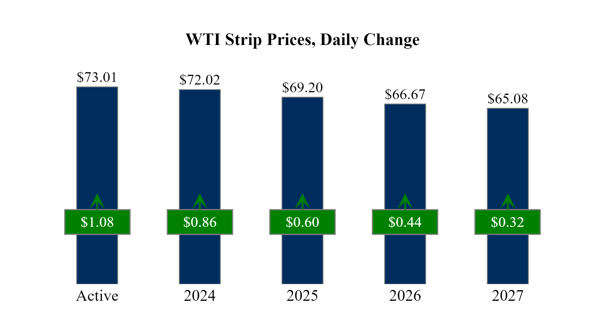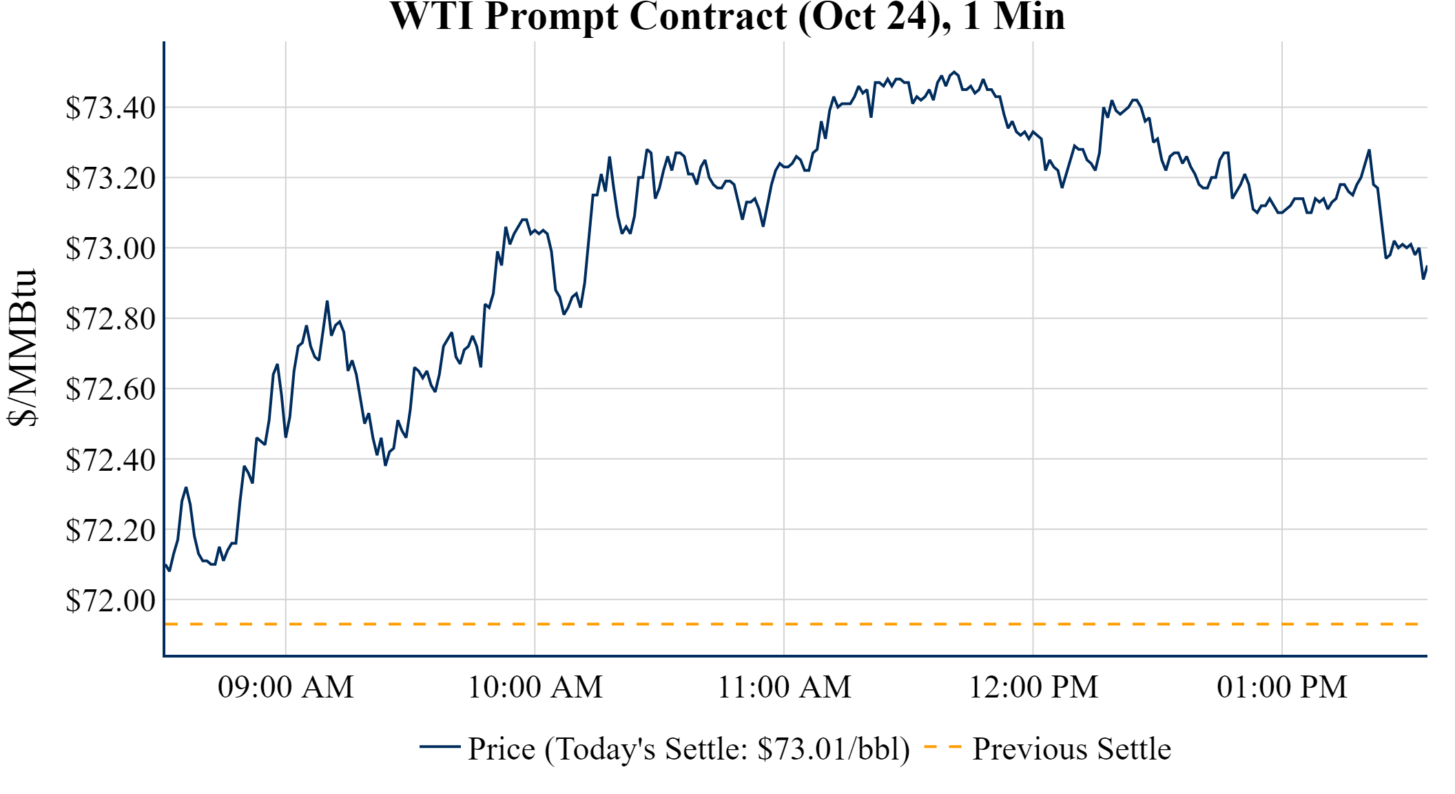 Prompt-Month WTI (Oct 24) was up $1.08 on the day, to settle at $73.01
