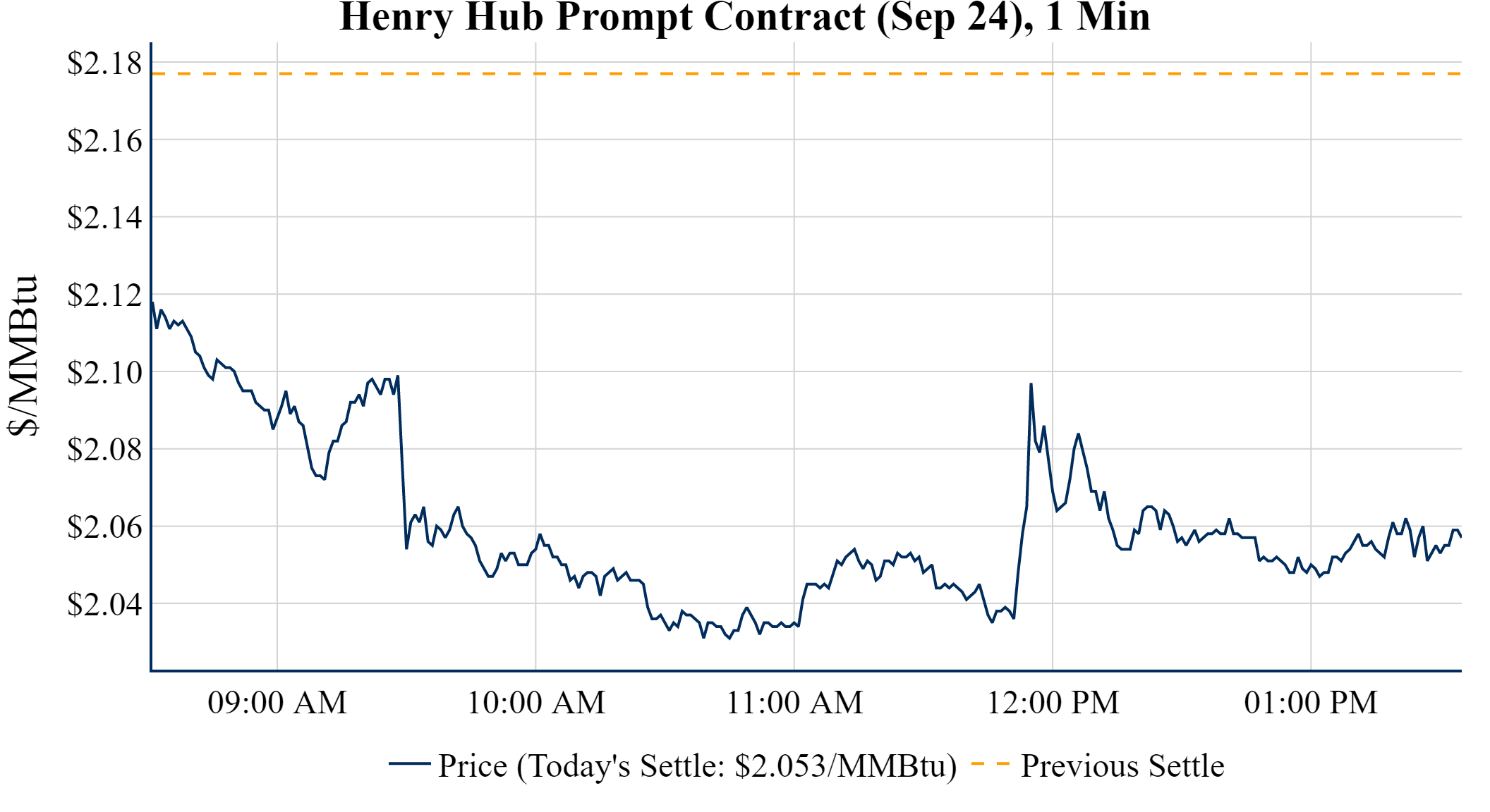 Prompt-Month Henry Hub (Sep 24) was down $-0.124 on the day, to settle at $2.053