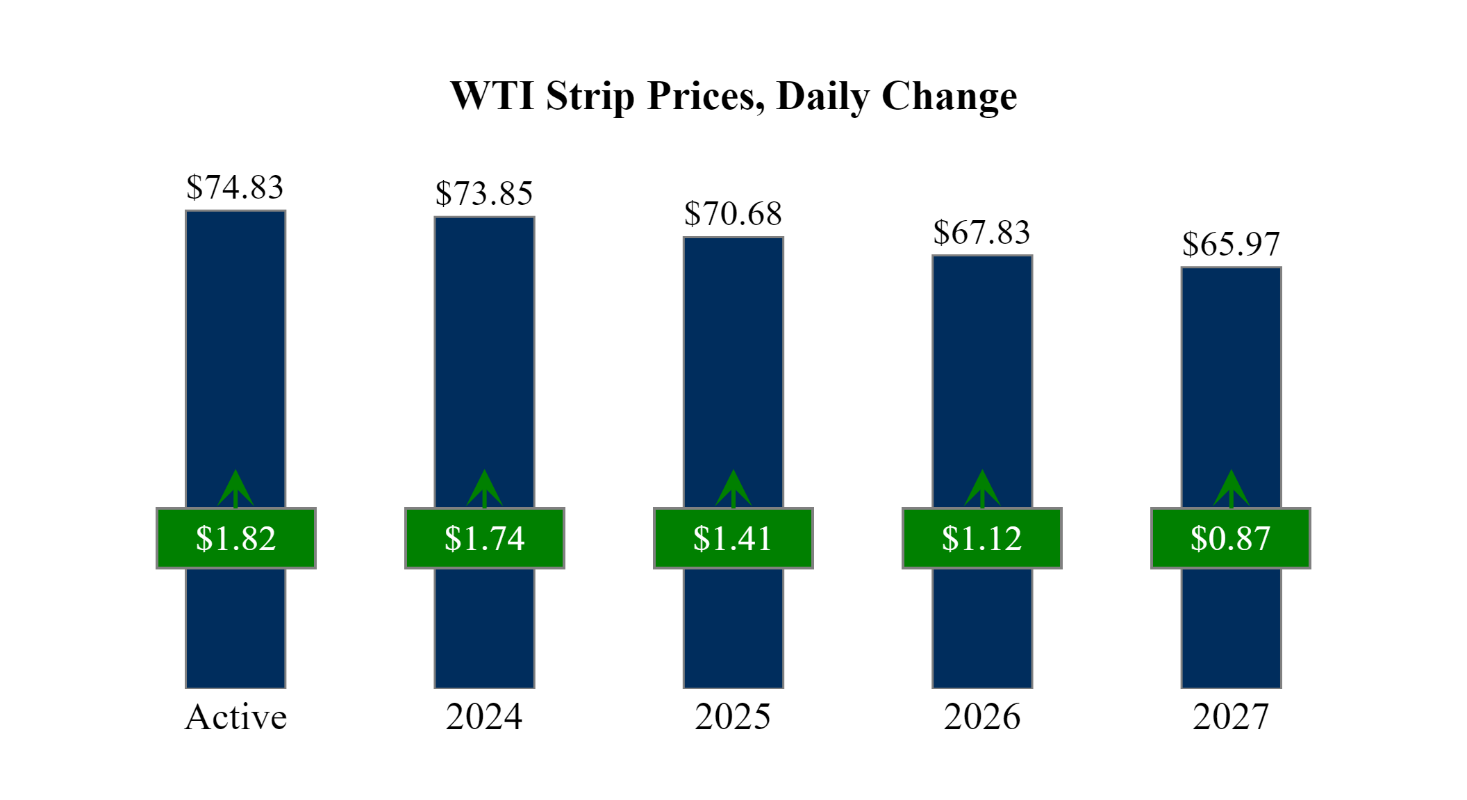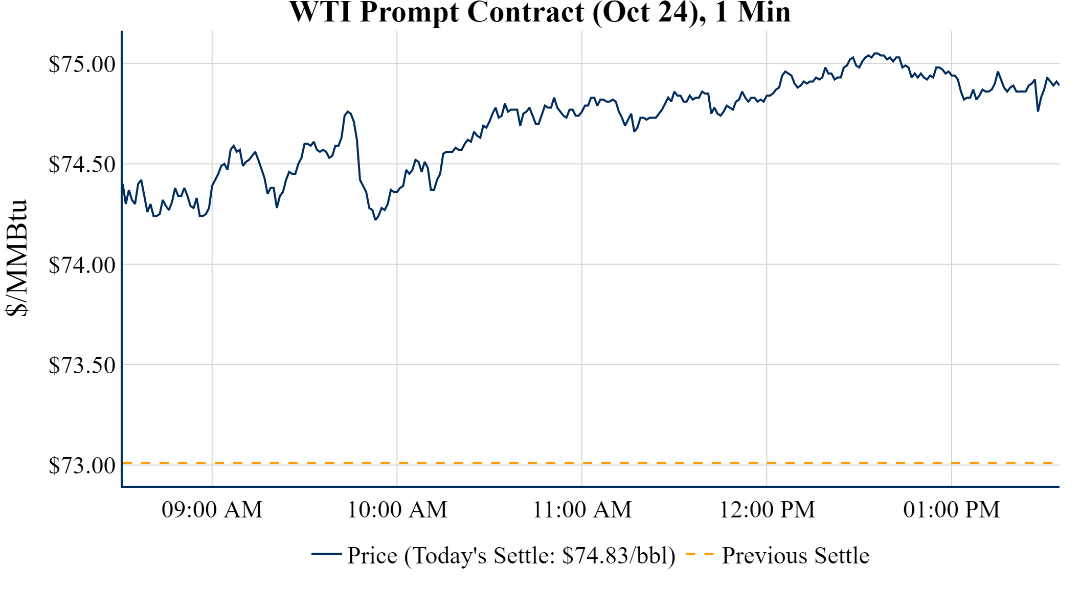 Prompt-Month WTI (Oct 24) was up $1.82 on the day, to settle at $74.83
