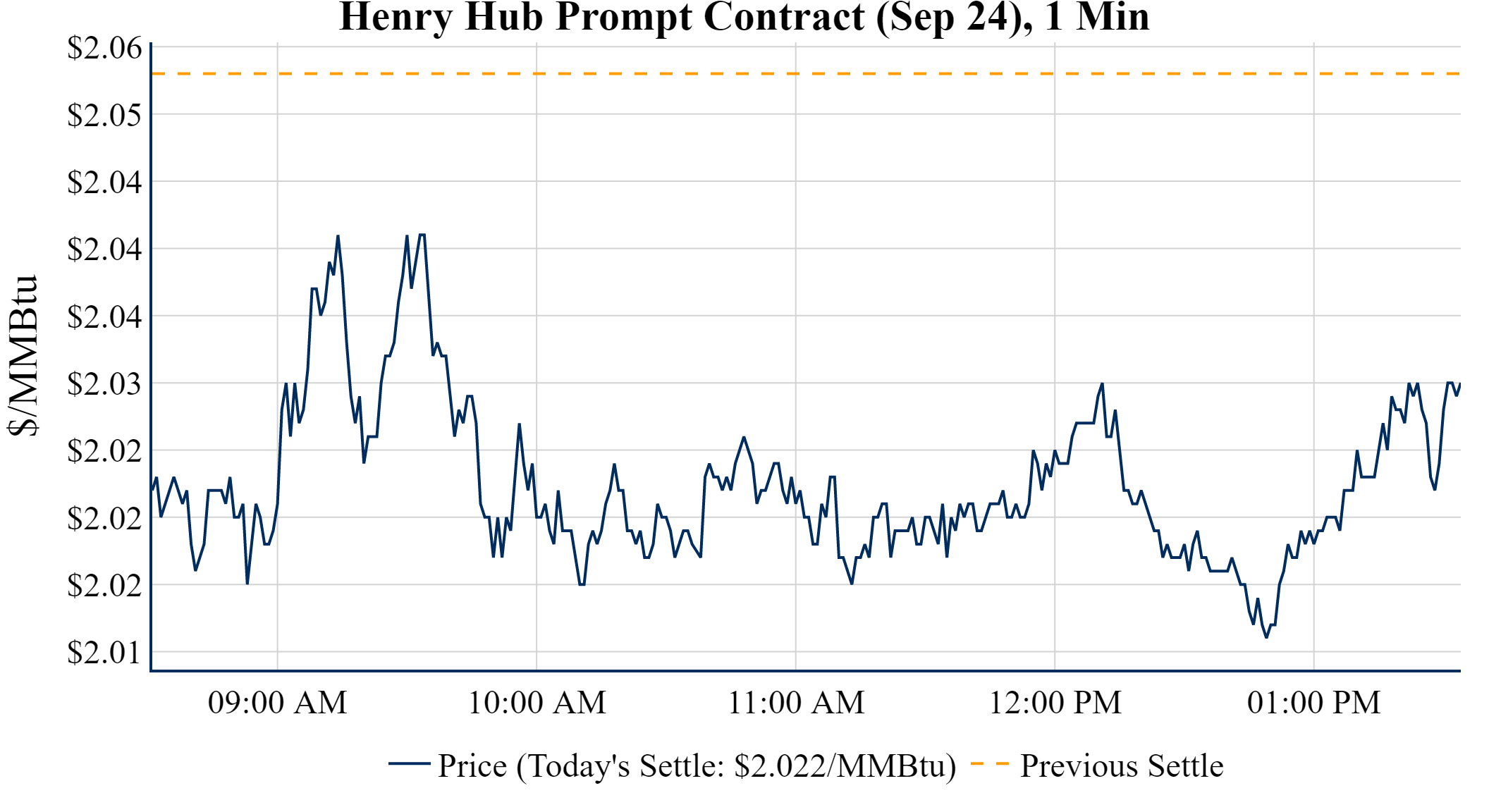 Prompt-Month Henry Hub (Sep 24) was down $-0.031 on the day, to settle at $2.022