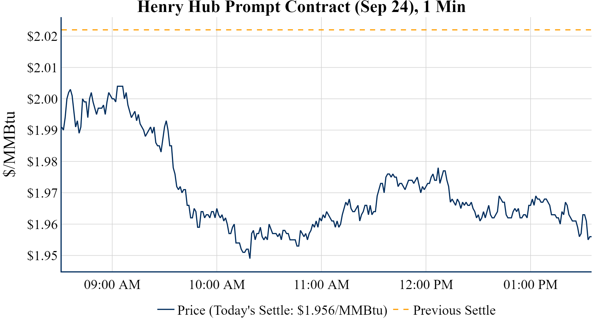Prompt-Month Henry Hub (Sep 24) was down $-0.066 on the day, to settle at $1.956