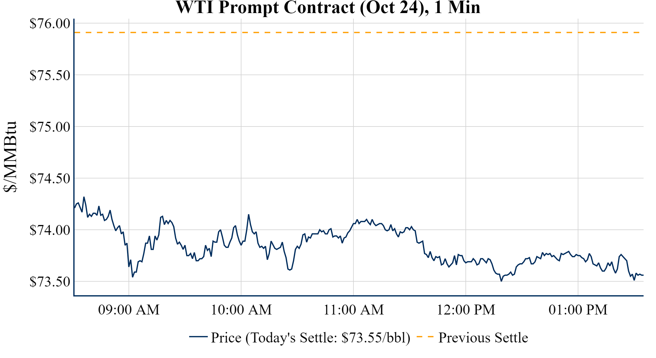 Prompt-Month WTI (Oct 24) was down $-2.36 on the day, to settle at $73.55