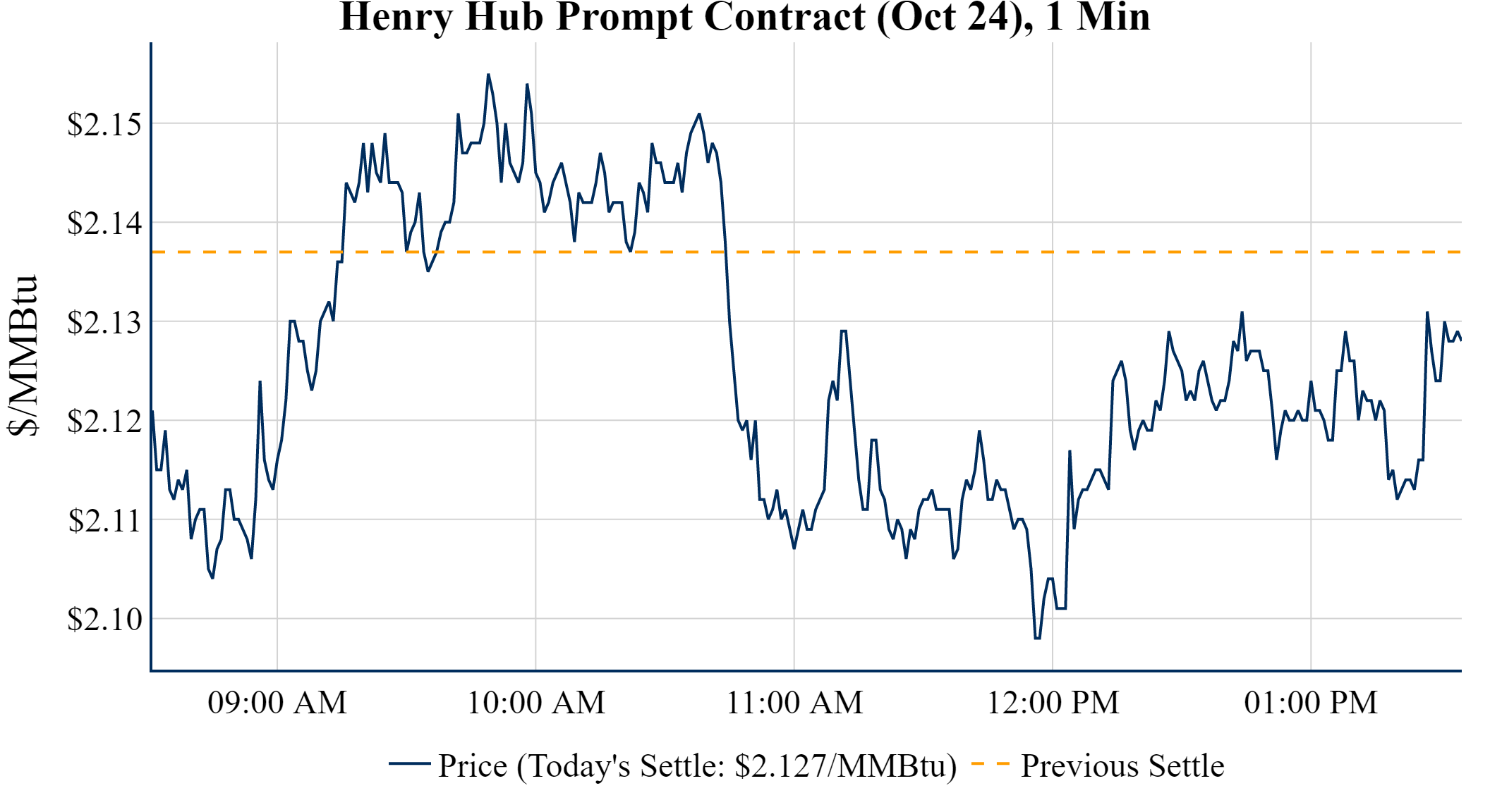 Prompt-Month Henry Hub (Oct 24) was down $-0.010 on the day, to settle at $2.127