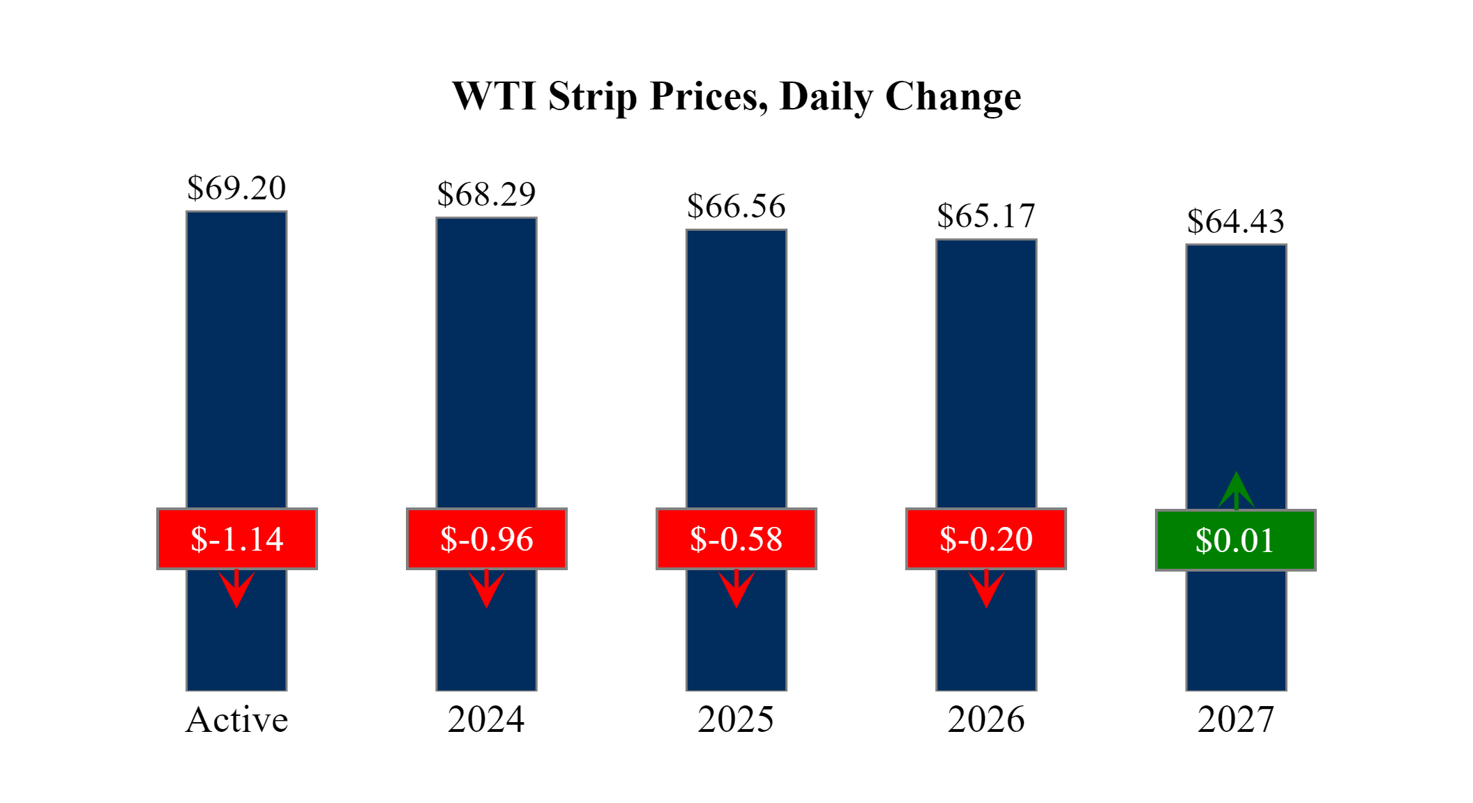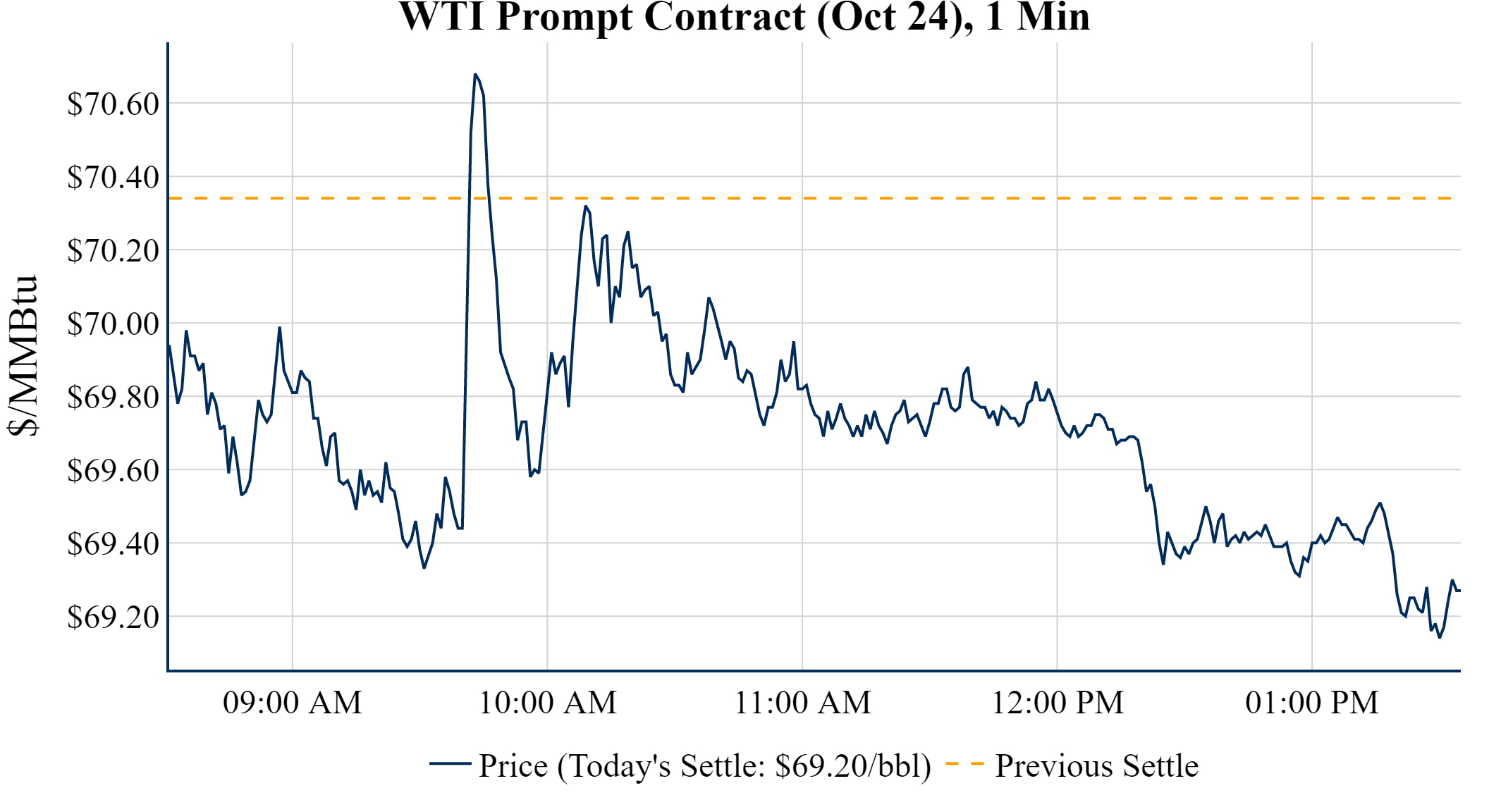 Prompt-Month WTI (Oct 24) was down $-1.14 on the day, to settle at $69.20