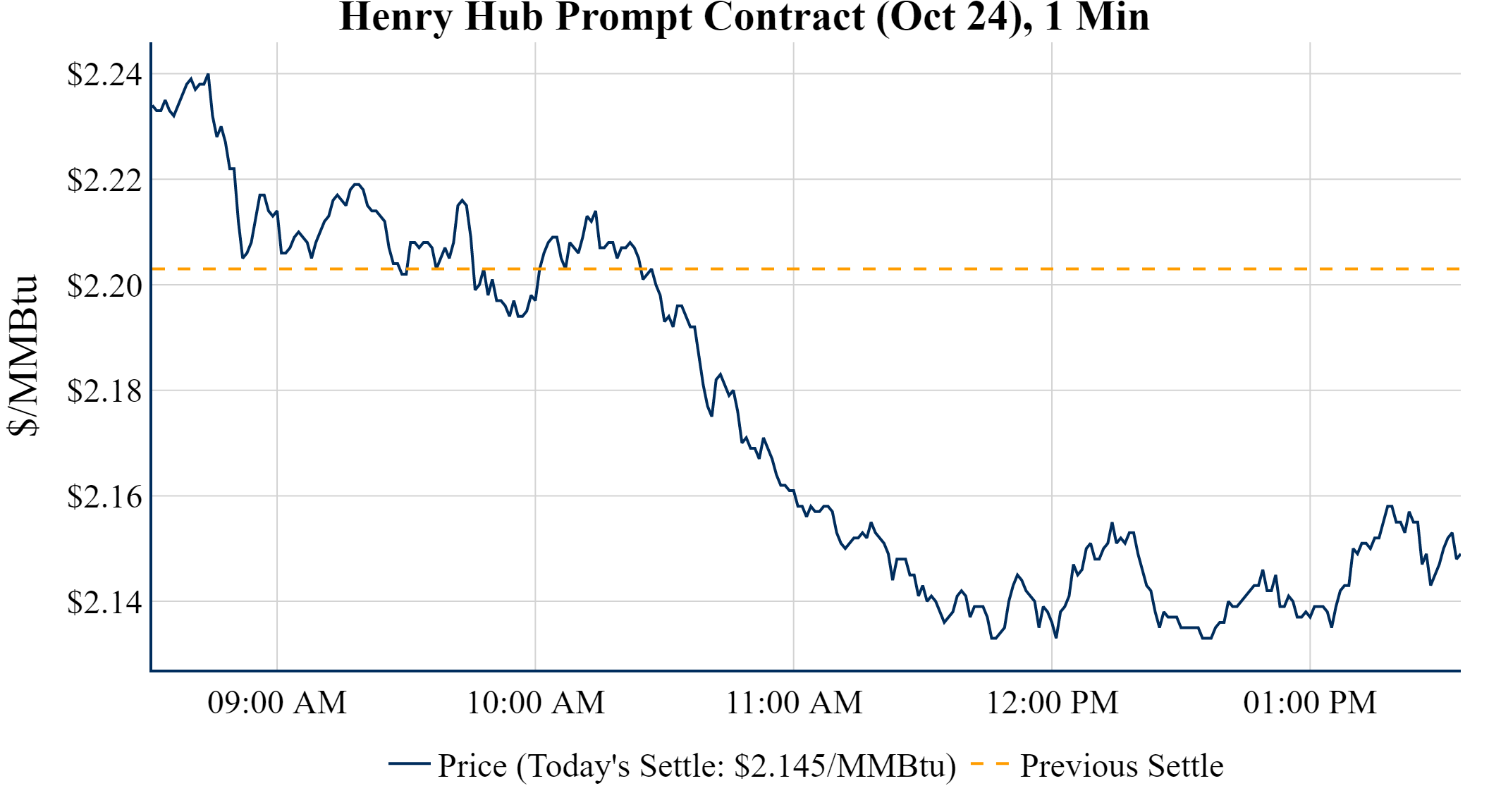 Prompt-Month Henry Hub (Oct 24) was down $-0.058 on the day, to settle at $2.145