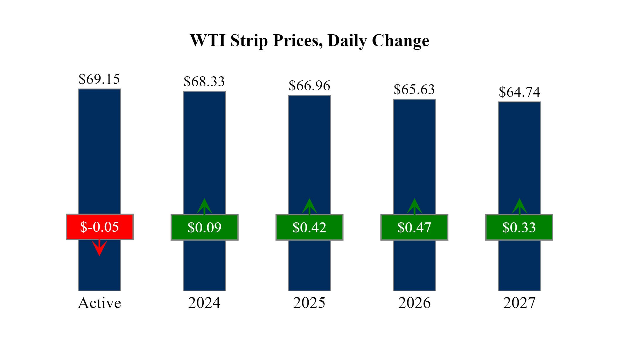 Prompt-Month WTI (Oct 24) was down $-0.05 on the day, to settle at $69.15