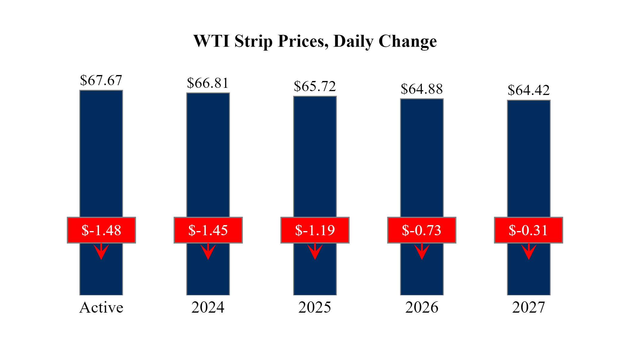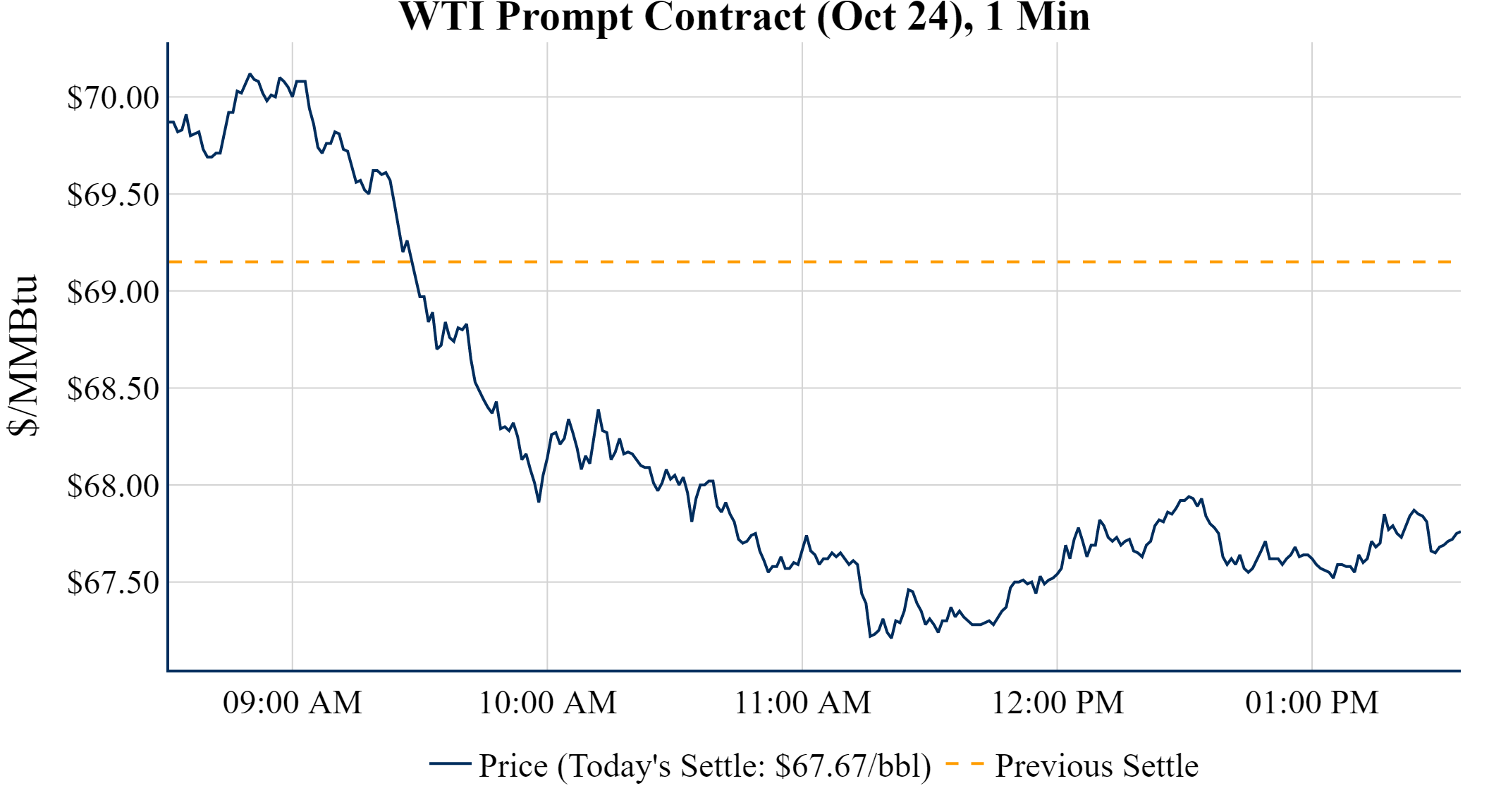 Prompt-Month WTI (Oct 24) was down $-1.48 on the day, to settle at $67.67