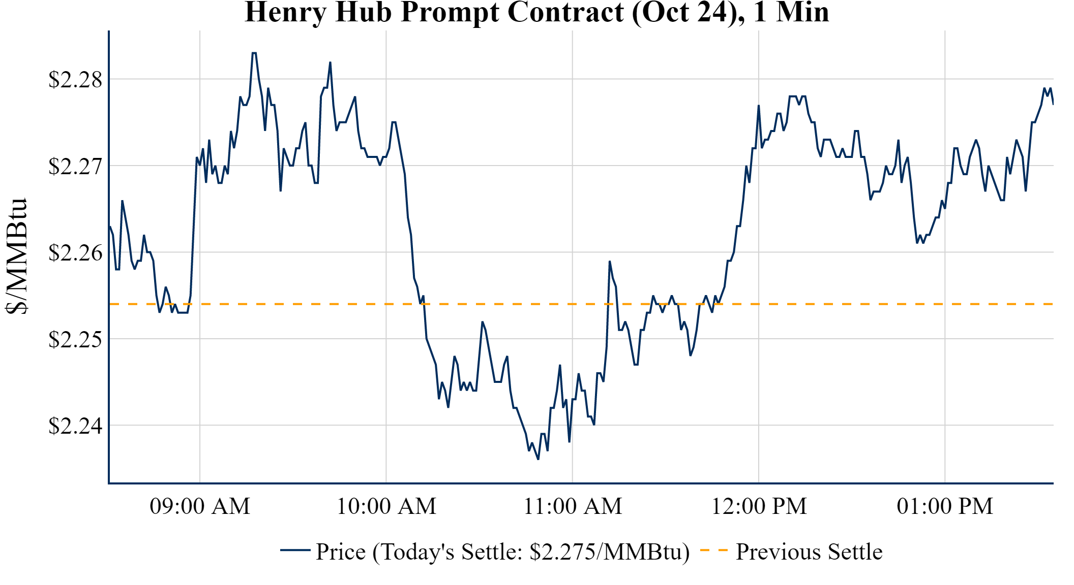 Prompt-Month Henry Hub (Oct 24) was up $0.021 on the day, to settle at $2.275