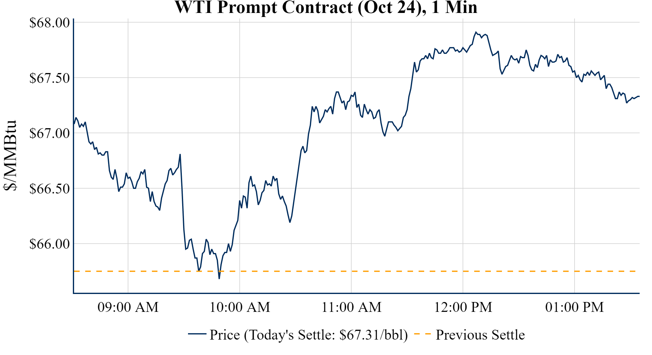 Prompt-Month WTI (Oct 24) was up $1.56 on the day, to settle at $67.31