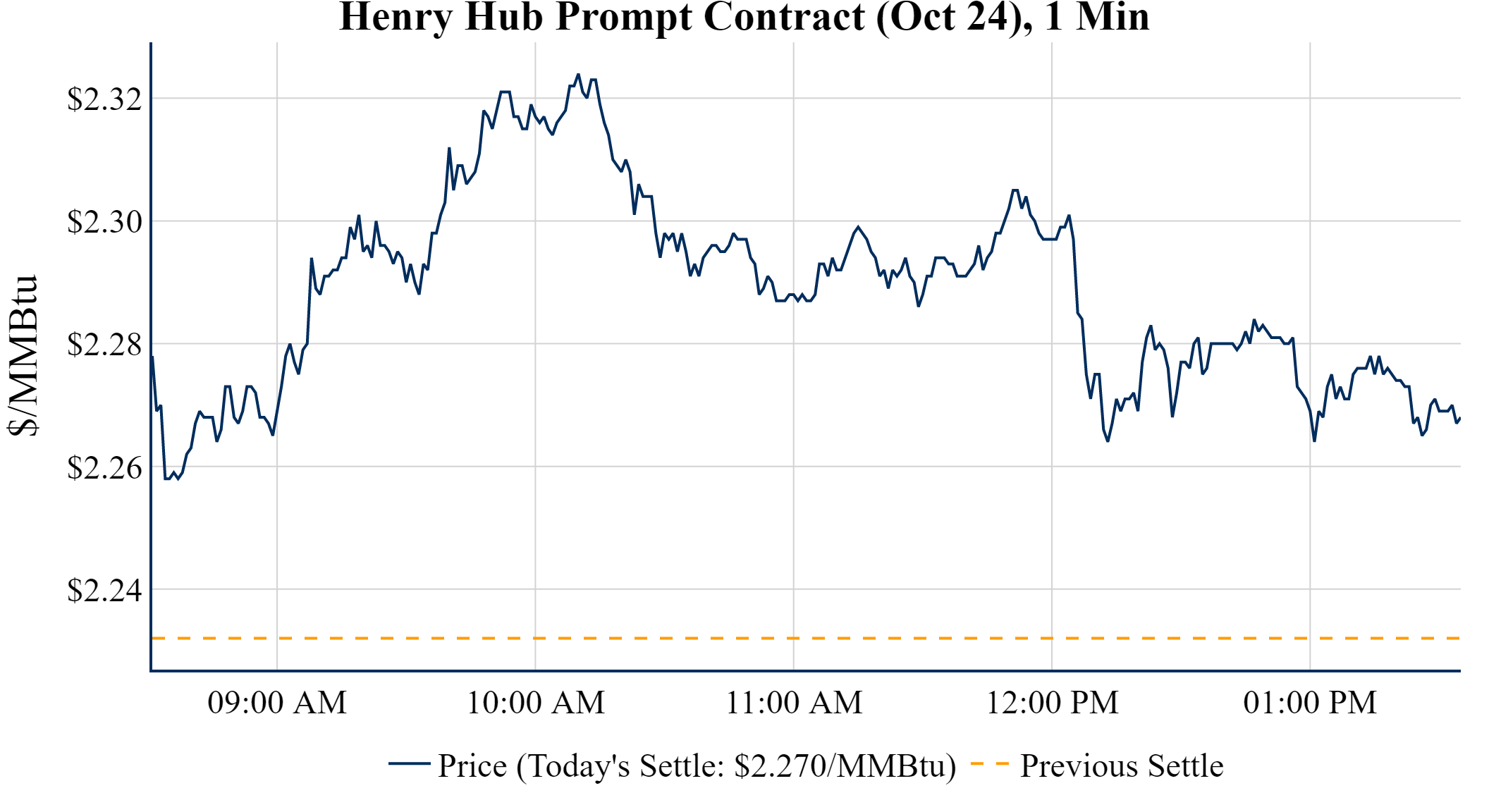 Prompt-Month Henry Hub (Oct 24) was up $0.038 on the day, to settle at $2.270
