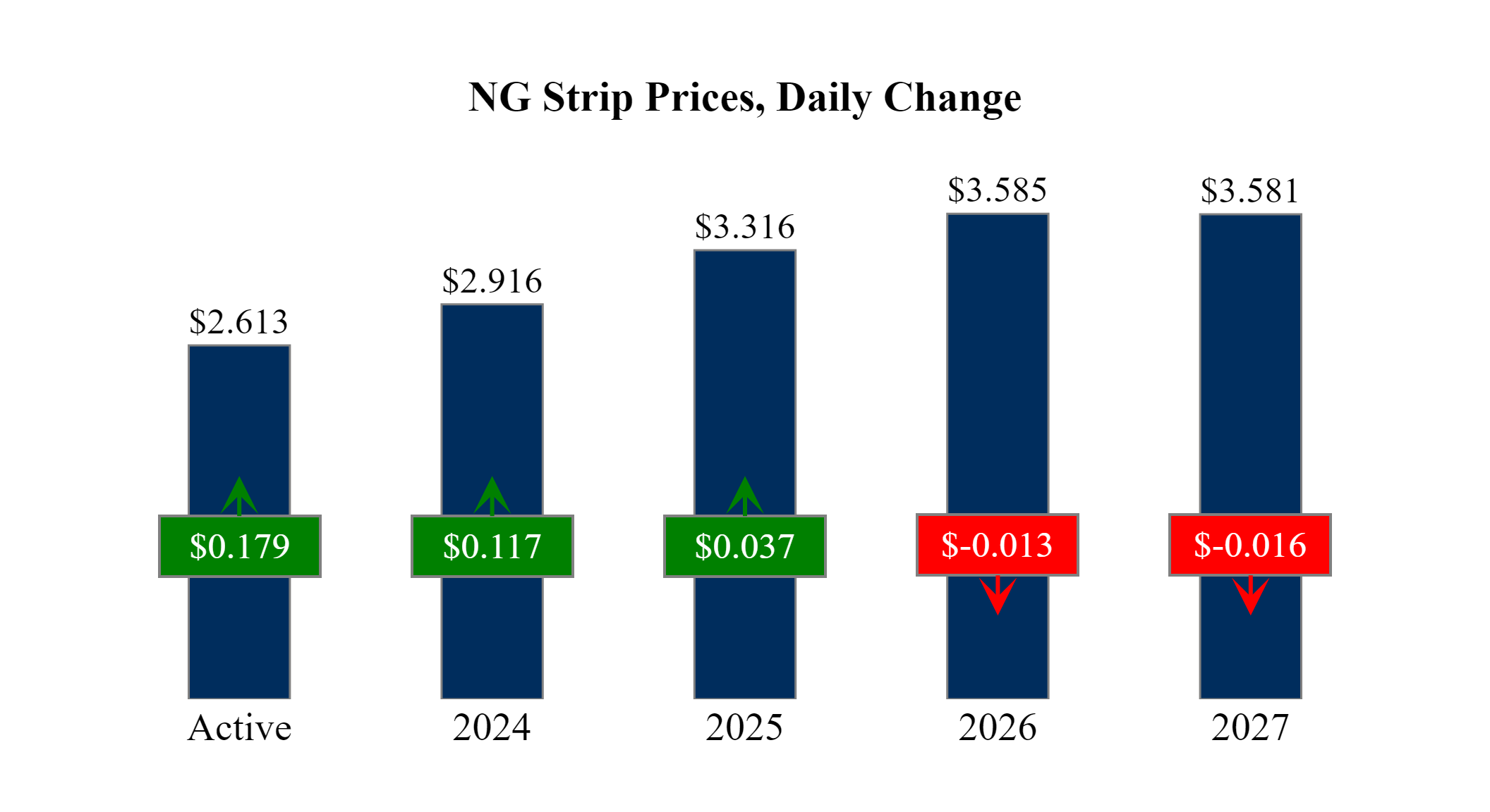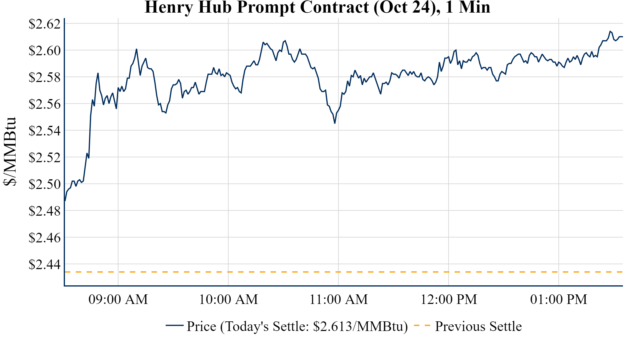 Prompt-Month Henry Hub (Oct 24) was up $0.179 on the day, to settle at $2.613 Prompt-Month WTI (Nov 24) was down $-0.63 on the day, to settle at $70.37