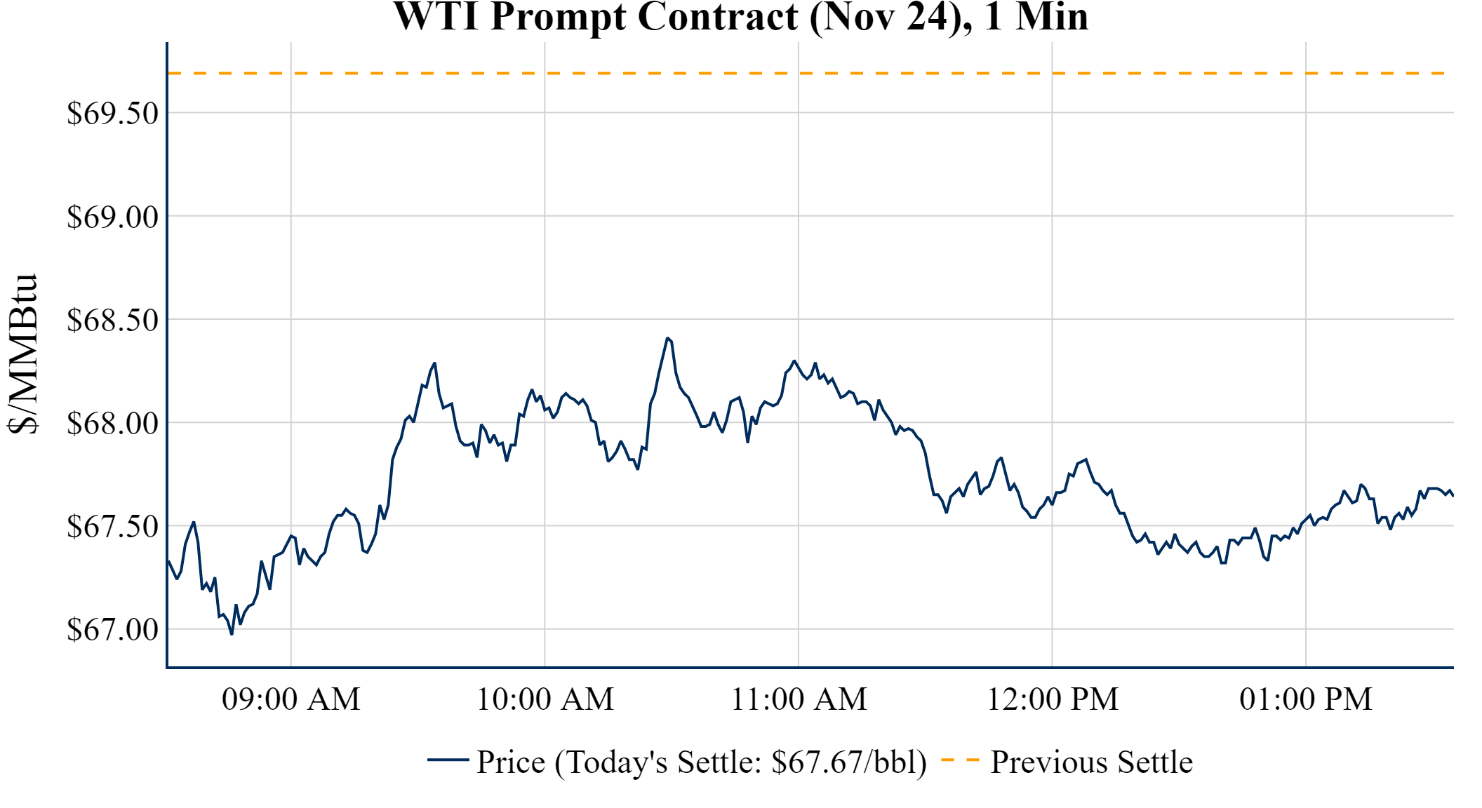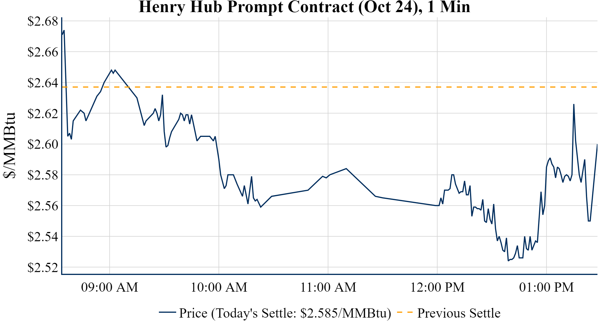 Prompt-Month Henry Hub (Oct 24) was down $-0.052 on the day, to settle at $2.585 Prompt-Month WTI (Nov 24) was down $-2.02 on the day, to settle at $67.67