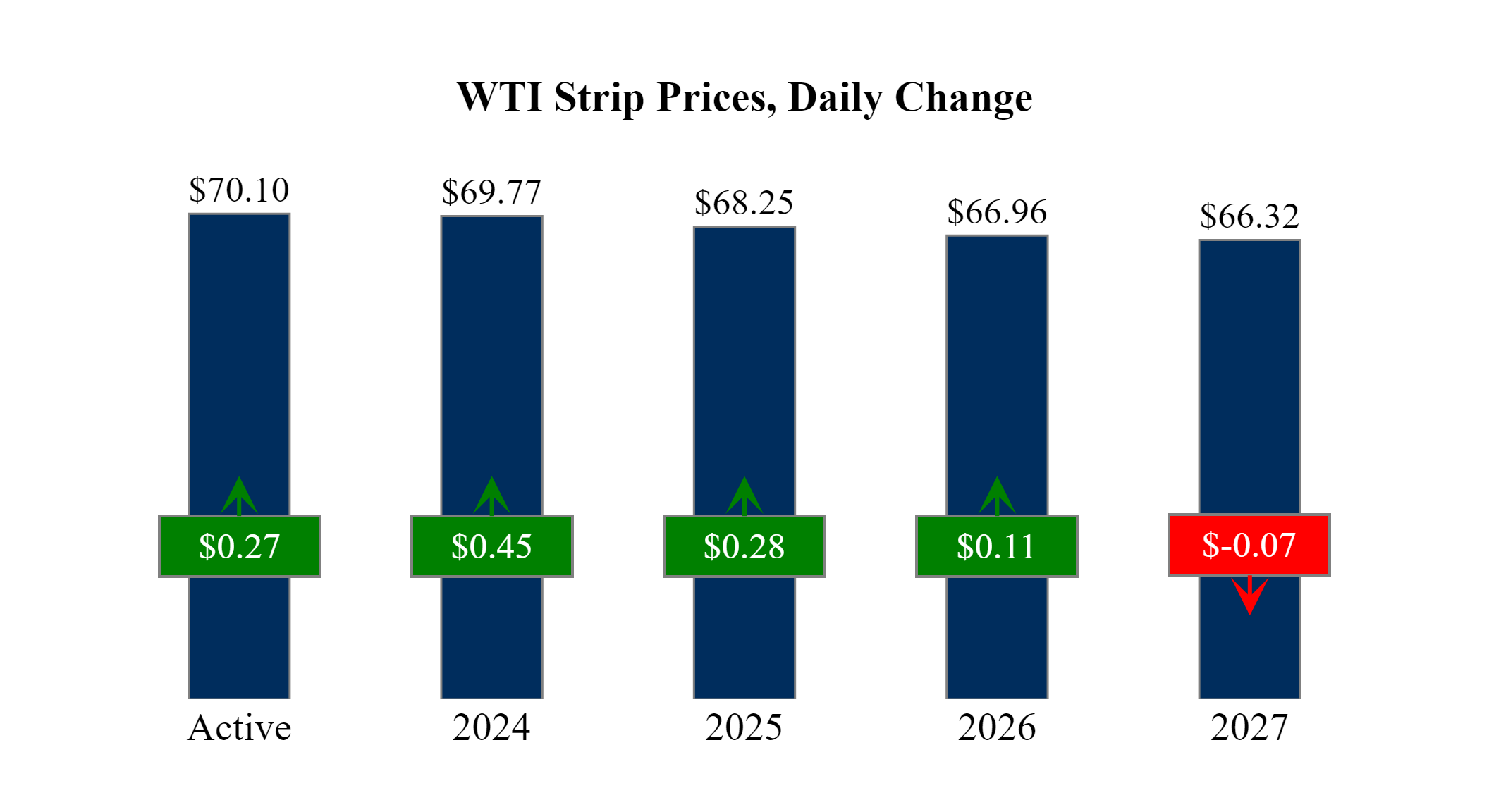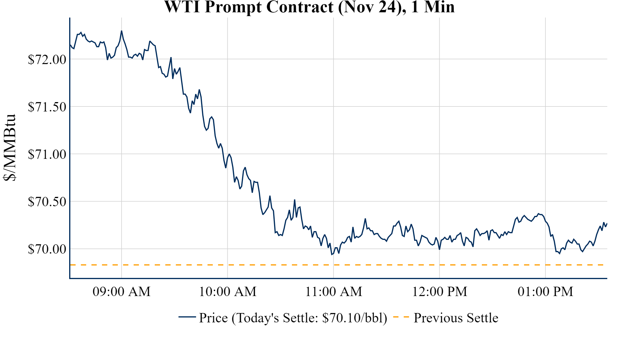 Prompt-Month WTI (Nov 24) was up $0.27 on the day, to settle at $70.10
