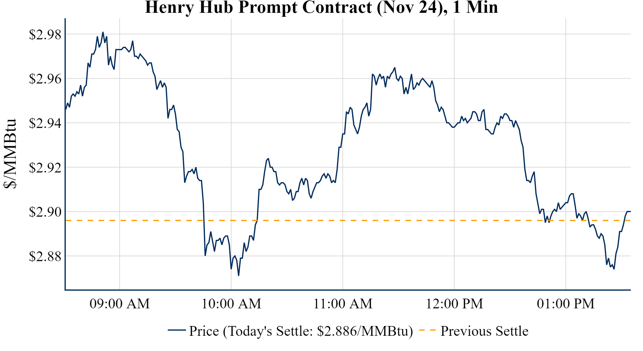 Prompt-Month Henry Hub (Nov 24) was down $-0.010 on the day, to settle at $2.886