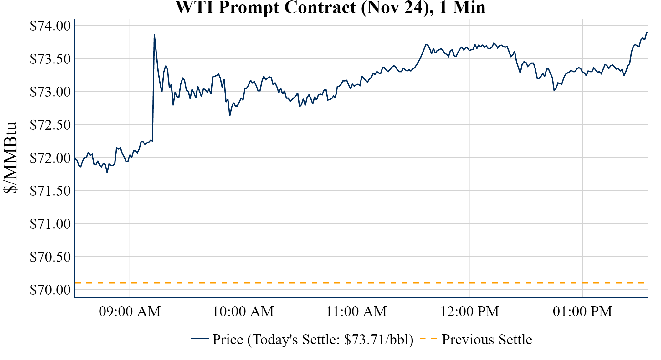 Prompt-Month WTI (Nov 24) was up $3.61 on the day, to settle at $73.71