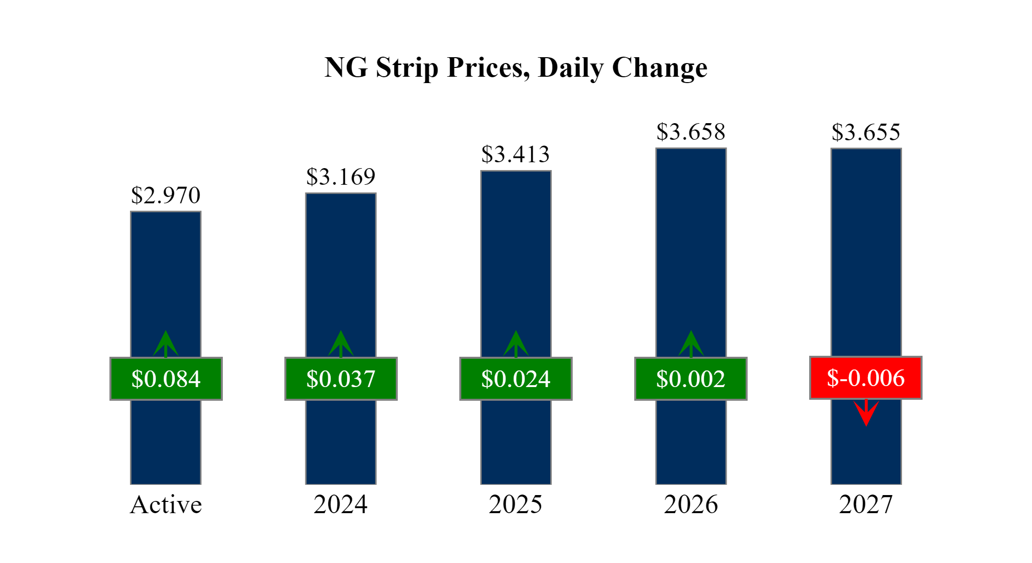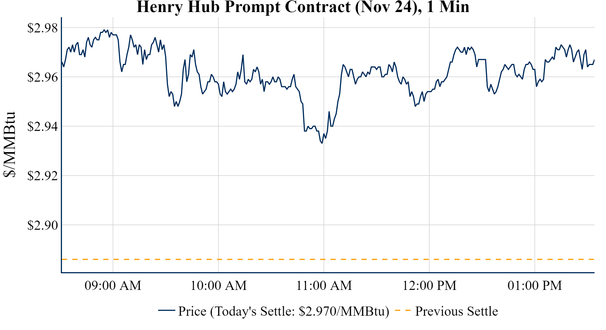Prompt-Month Henry Hub (Nov 24) was up $0.084 on the day, to settle at $2.970