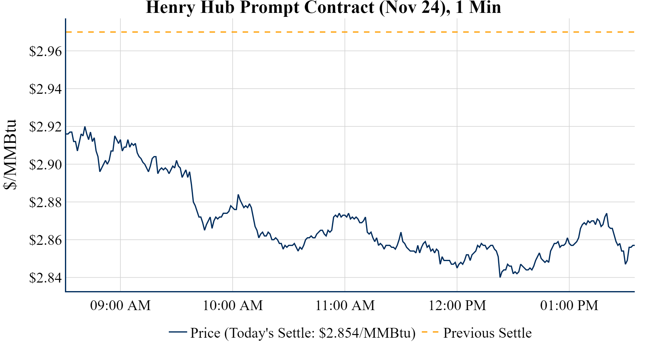 Prompt-Month Henry Hub (Nov 24) was down $-0.116 on the day, to settle at $2.854