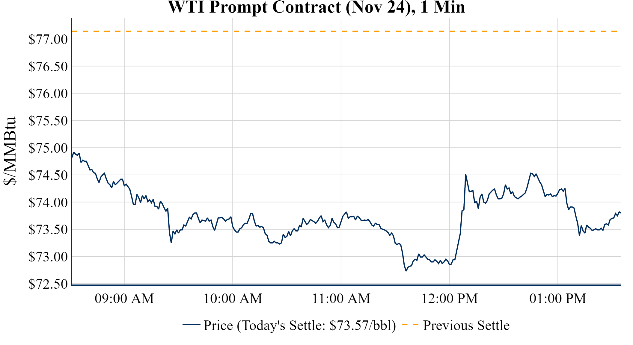 Prompt-Month WTI (Nov 24) was down $-3.57 on the day, to settle at $73.57