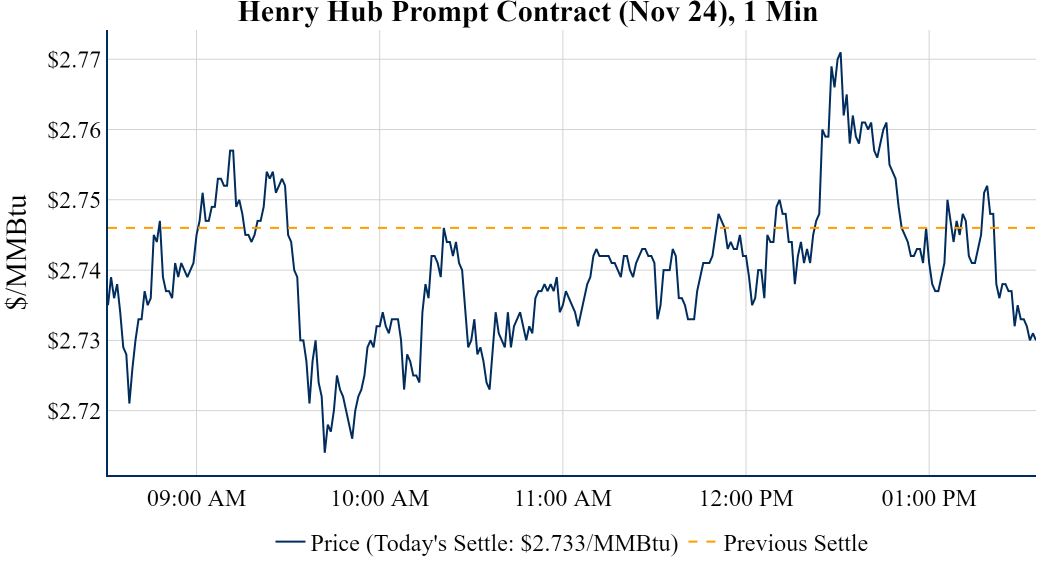 Prompt-Month Henry Hub (Nov 24) was down $-0.013 on the day, to settle at $2.733