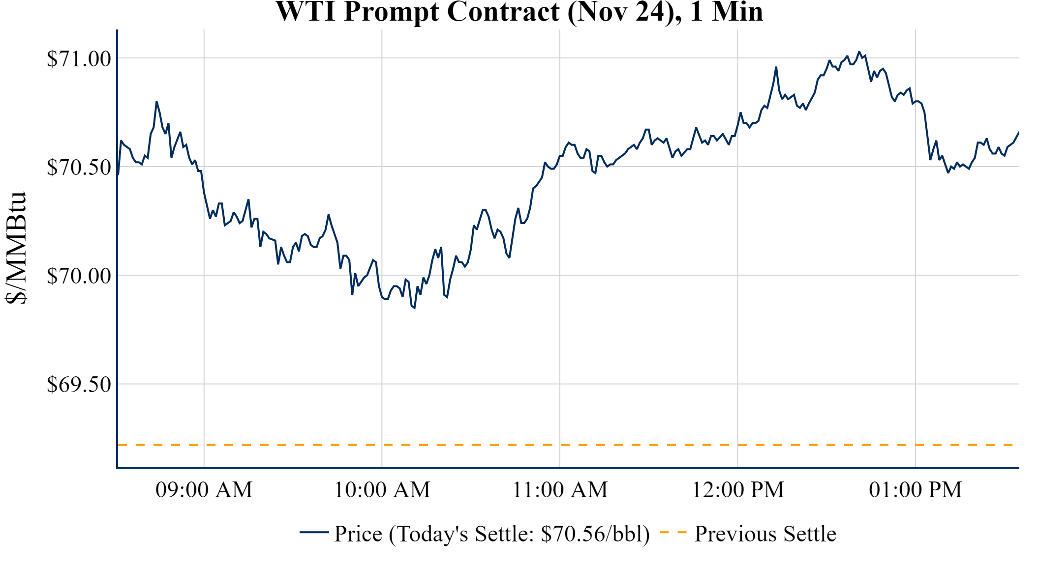 Prompt-Month WTI (Nov 24) was up $1.34 on the day, to settle at $70.56