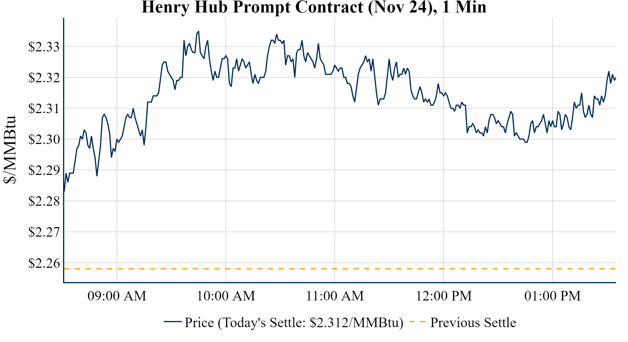 Prompt-Month Henry Hub (Nov 24) was up $0.054 on the day, to settle at $2.312