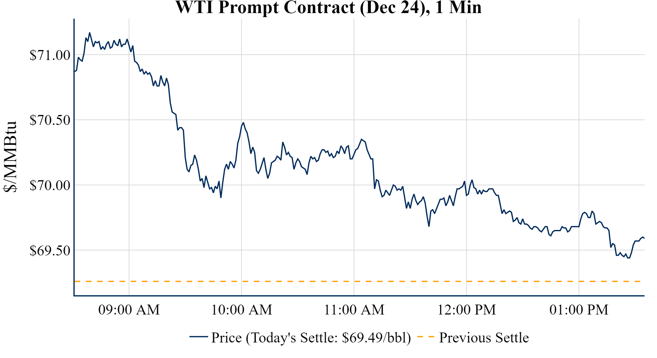 Prompt-Month WTI (Dec 24) was up $0.23 on the day, to settle at $69.49