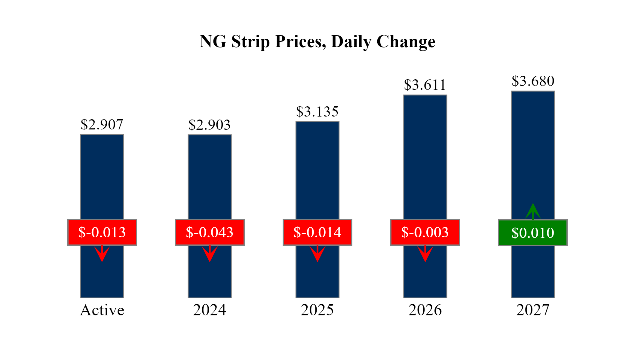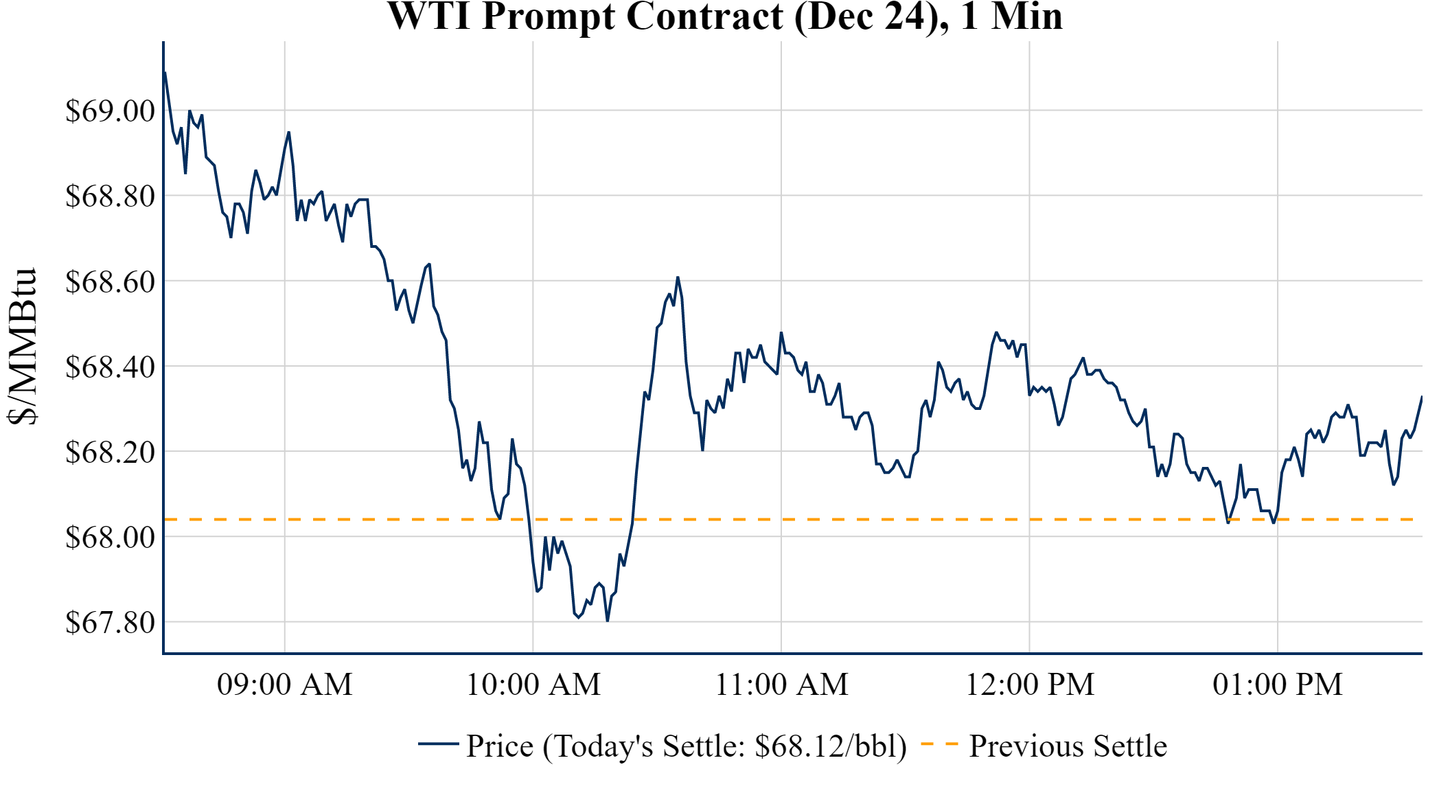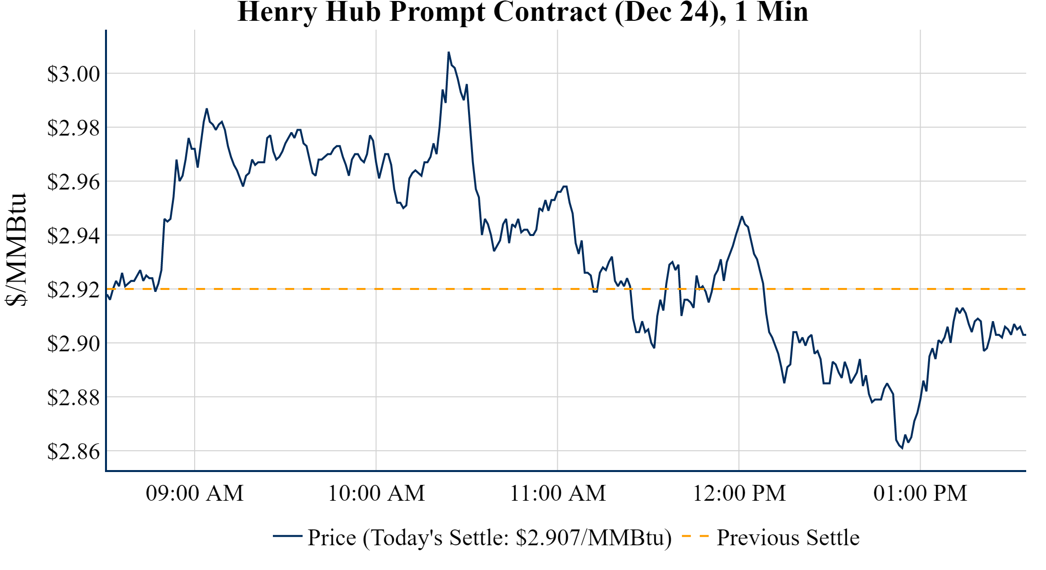 Prompt-Month Henry Hub (Dec 24) was down $-0.013 on the day, to settle at $2.907Prompt-Month WTI (Dec 24) was up $0.08 on the day, to settle at $68.12