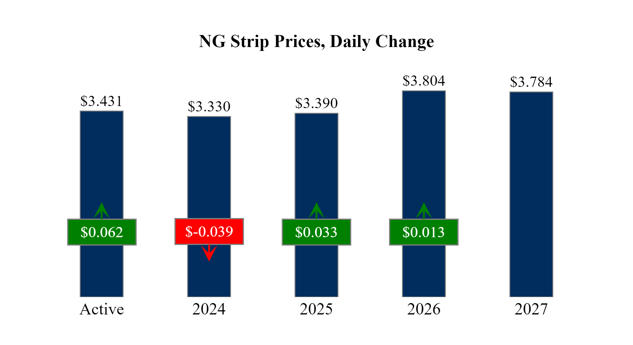 Prompt-Month Henry Hub (Dec 24) was up $0.062 on the day, to settle at $3.431Prompt-Month WTI (Jan 25) was down $0.17 on the day, to settle at $68.77