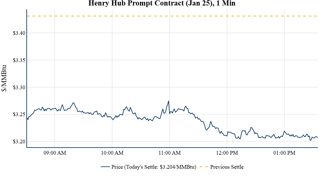 Prompt-Month Henry Hub (Jan 25) was down $0.263 on the day, to settle at $3.204Prompt-Month WTI (Jan 25) was down $0.05 on the day, to settle at $68.72