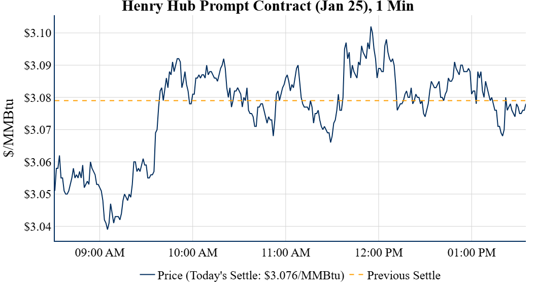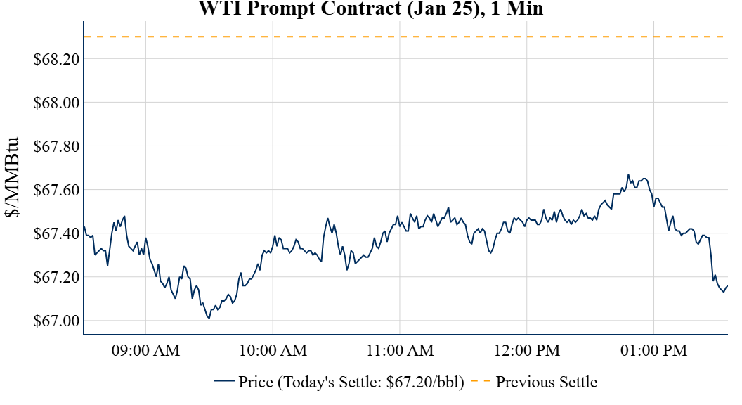Prompt-Month Henry Hub (Jan 25) was down $0.003 on the day, to settle at $3.076Prompt-Month WTI (Jan 25) was down $1.10 on the day, to settle at $67.20