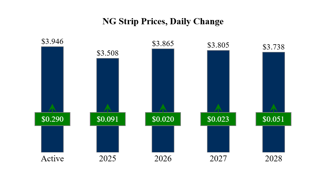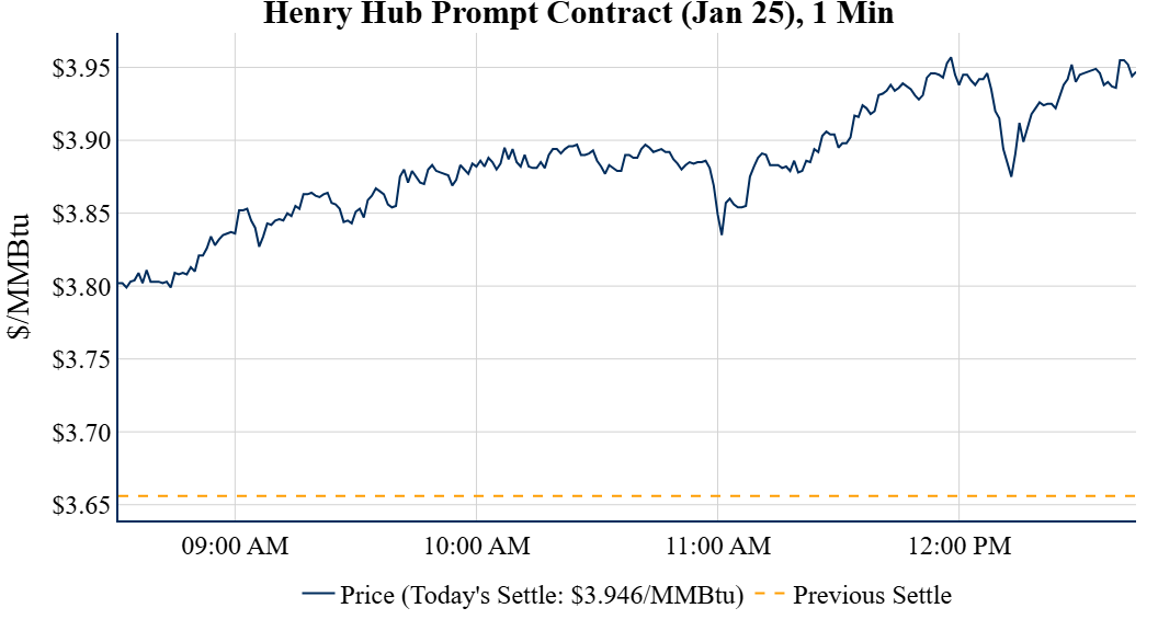 Prompt-Month Henry Hub (Jan 25) was up $0.290 on the day, to settle at $3.946Prompt-Month WTI (Feb 25) was up $0.86 on the day, to settle at $70.10