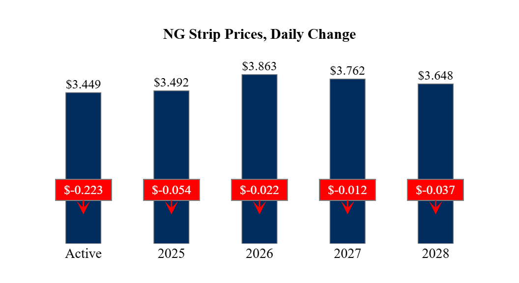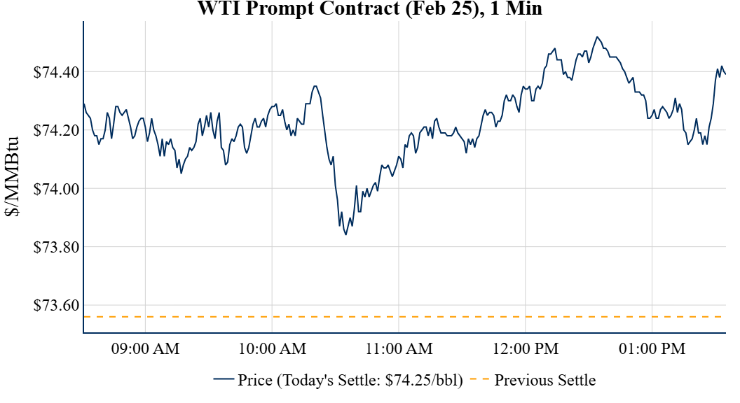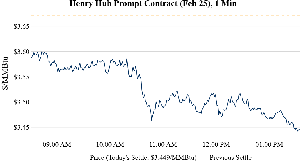 Prompt-Month Henry Hub (Feb 25) was down $0.223 on the day, to settle at $3.449Prompt-Month WTI (Feb 25) was up $0.69 on the day, to settle at $74.25