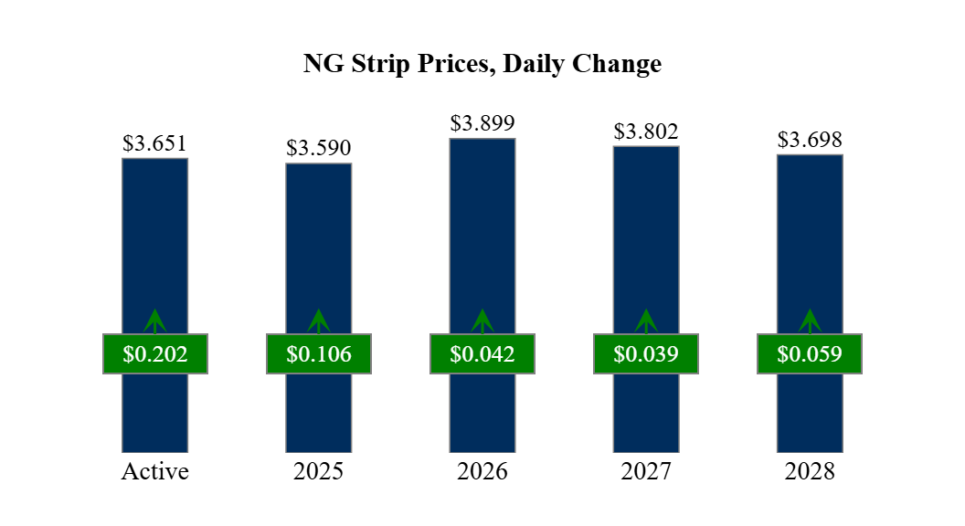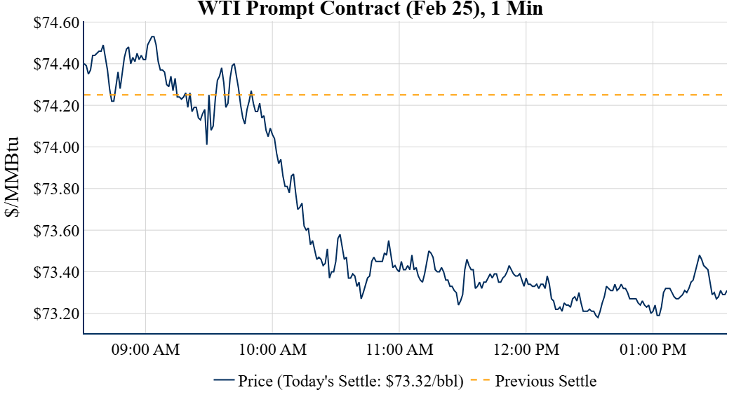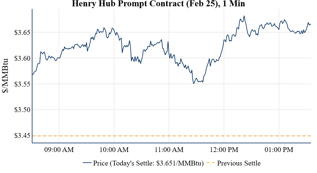 Prompt-Month Henry Hub (Feb 25) was up $0.202 on the day, to settle at $3.651Prompt-Month WTI (Feb 25) was down $0.93 on the day, to settle at $73.32
