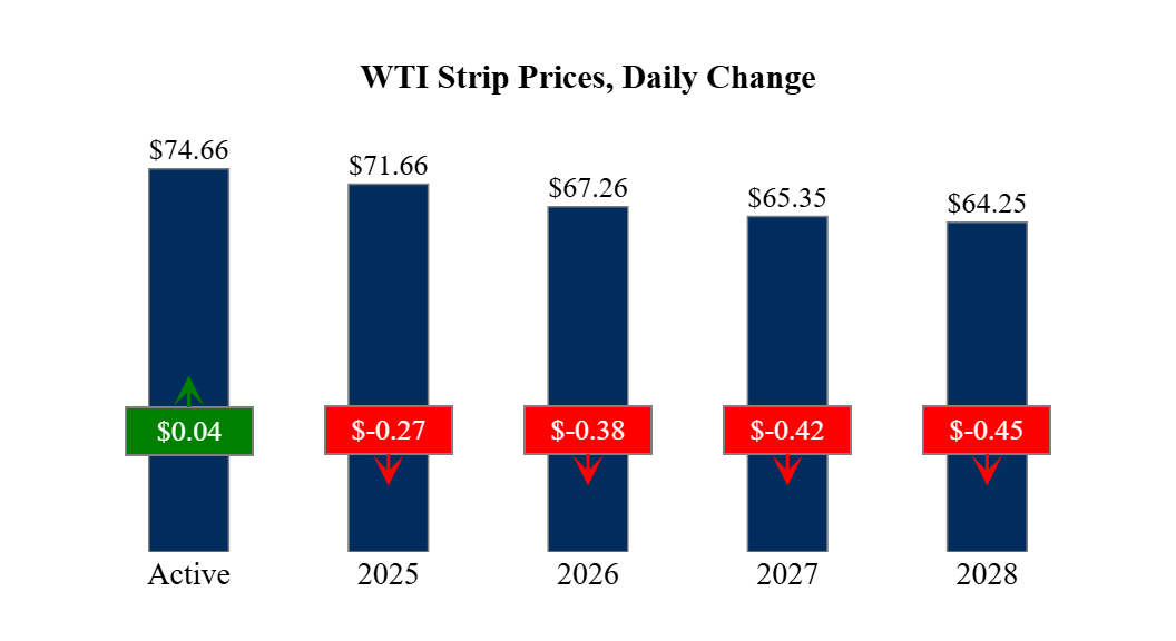 Prompt-Month Henry Hub (Feb 25) was up $0.082 on the day, to settle at $4.027Prompt-Month WTI (Mar 25) was up $0.04 on the day, to settle at $74.66