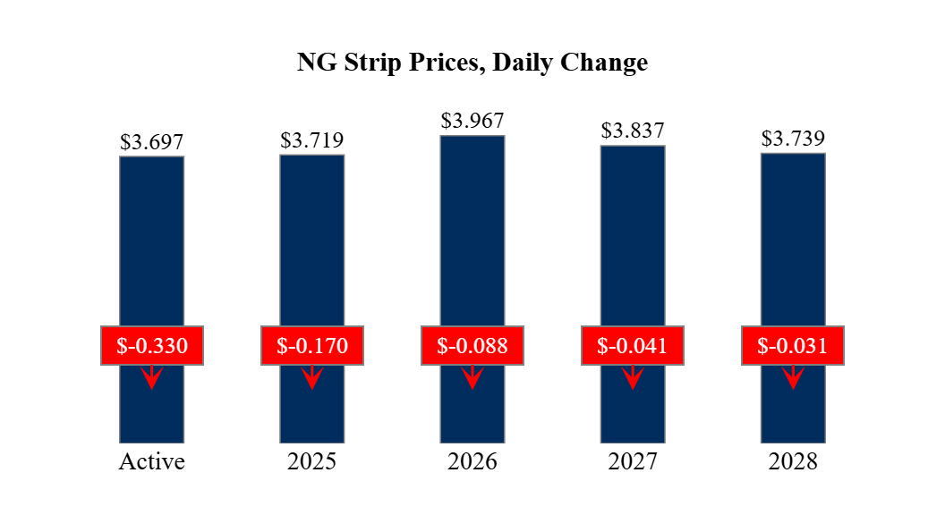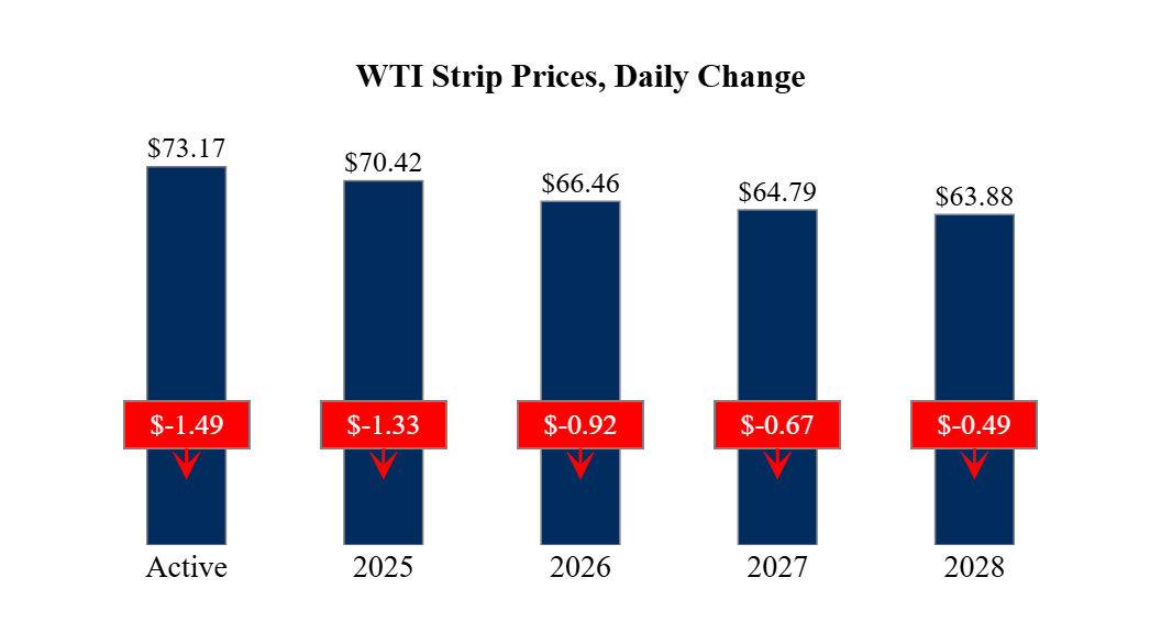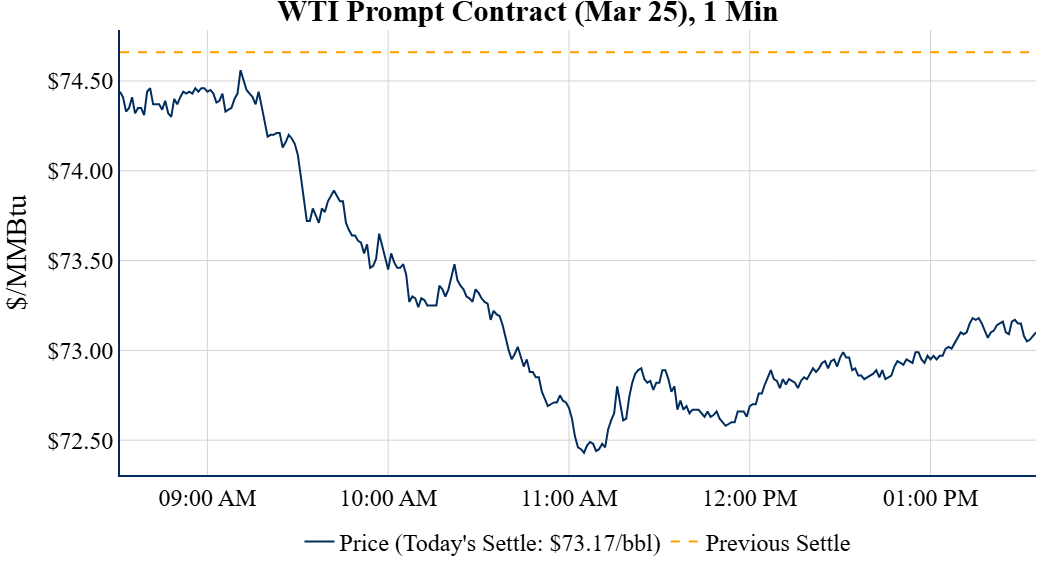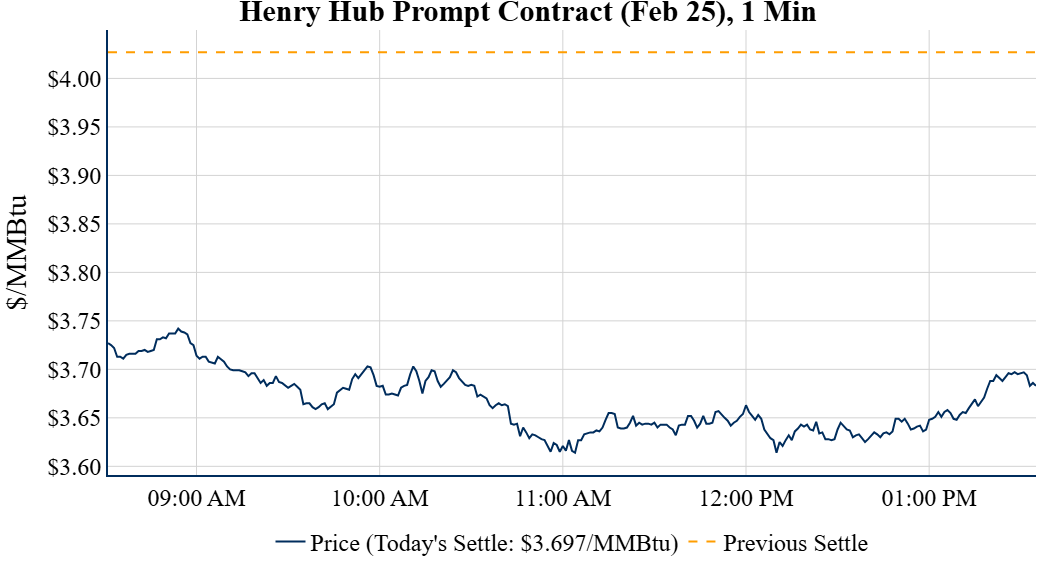 Prompt-Month Henry Hub (Feb 25) was down $0.330 on the day, to settle at $3.697Prompt-Month WTI (Mar 25) was down $1.49 on the day, to settle at $73.17