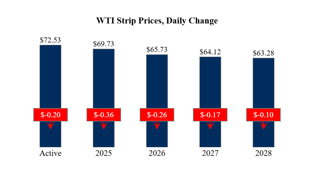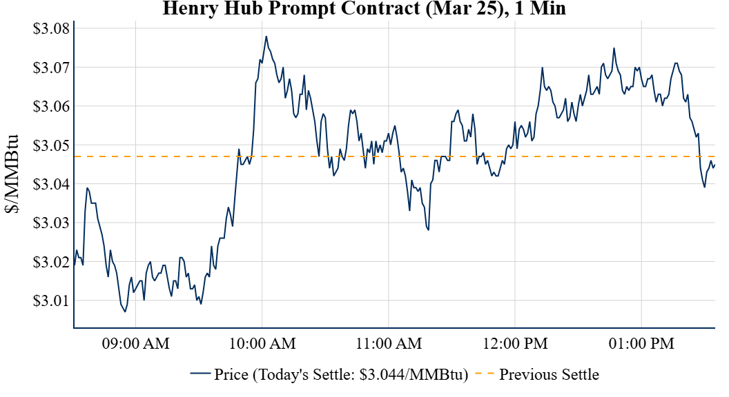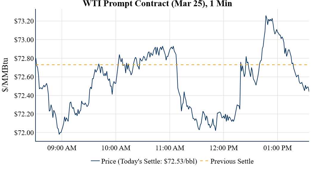 Prompt-Month Henry Hub (Mar 25) was down $0.003 on the day, to settle at $3.044Prompt-Month WTI (Mar 25) was down $0.20 on the day, to settle at $72.53