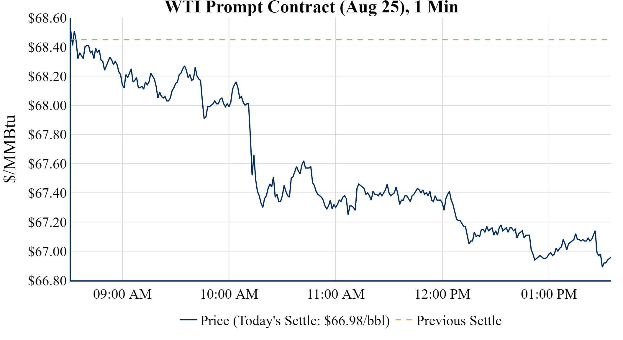 Last Look - WTI settles lower as demand outlook softens amid trade war fears
